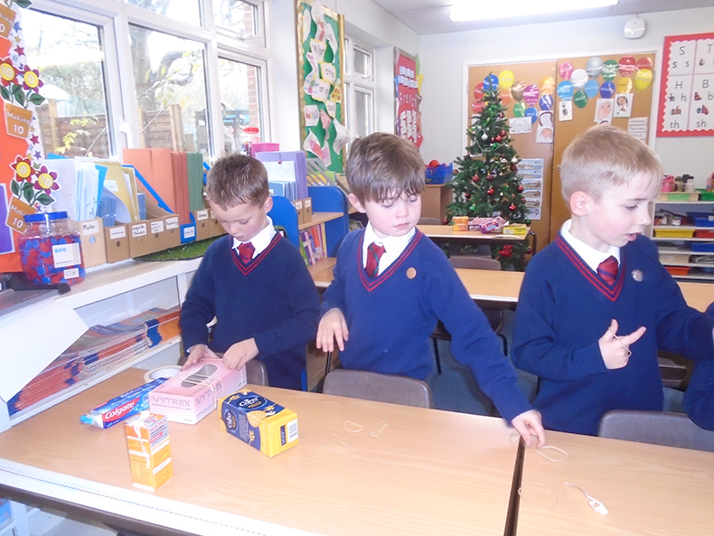 During science this week, they made their own musical instruments using recycled items. They were very creative and they designed instruments with a high or low pitch. They thoroughly enjoyed designing and making the instruments.