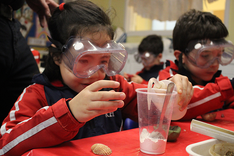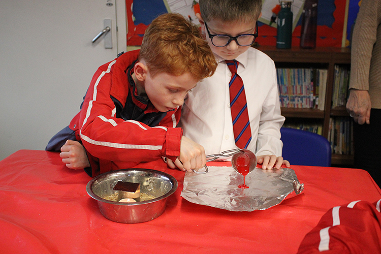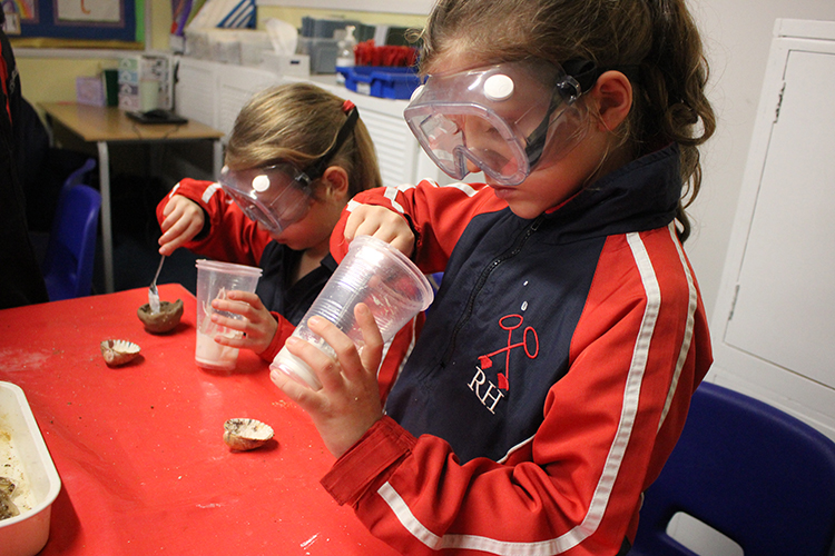 They spent the whole day finding out about how rocks and soils are formed and carrying out a range of exciting experiments. These involved hiding plastic dinosaurs in sedimentary rock, heating wax to represent metamorphic rock formation, and using effervescent tablets to simulate volcanic eruptions.