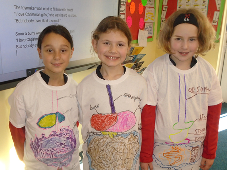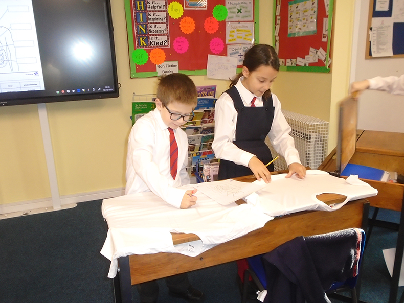 In science, they were set the challenge to recreate their digestive system on a t-shirt. The dimensions were quite tricky to get right and the children were surprised by how large their intestines in particular were. They were all very pleased with their final outcomes.