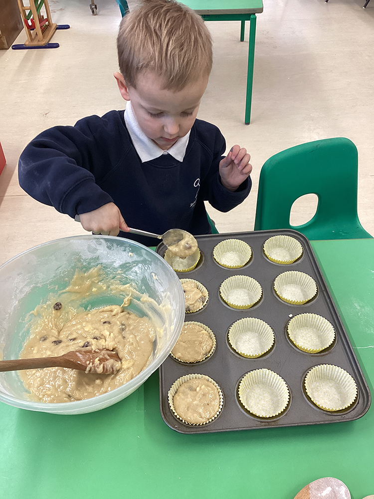 On Monday, we used our maths skills to sort the Three Bears' belongings correctly, using their sizes. In this activity we also had to do some cutting, supporting our fine motor skills. We also made some amazing banana and raisin cupcakes!