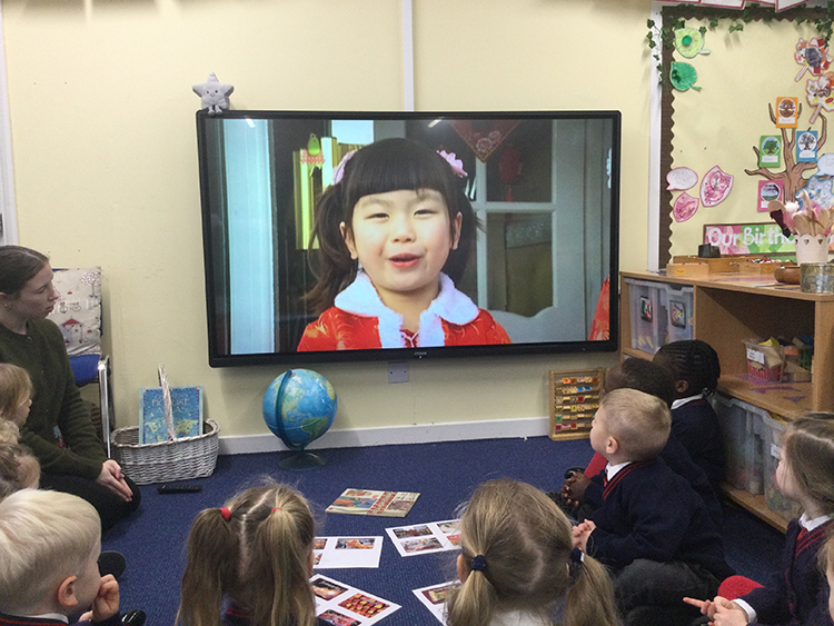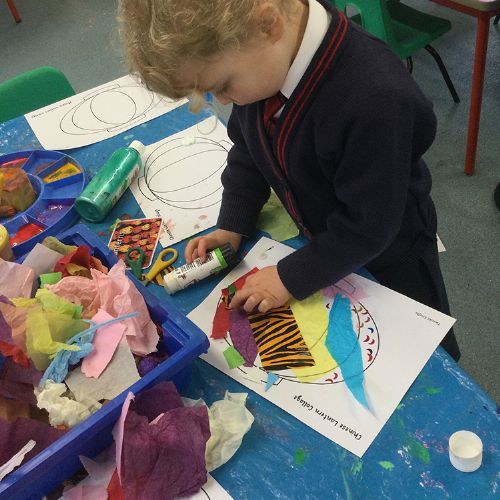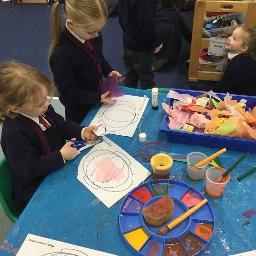 impressed by the creativity of the children, as they thought very carefully about the different shapes and colours they wanted to include on their decorations and why. During the video, we learned that red is the lucky colour for Chinese New Year. This inspired the children to create lots of lovely red lanterns to hang by the door, to bring good luck to our visitors. It also inspired us to find out the lucky colour of our own country, England, which is green!