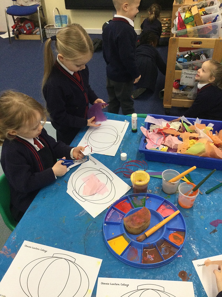 We started the week by watching a short video about a little girl celebrating Chinese New Year with her family. Then we had a chat about some of the similarities and differences between the celebrations in the video and our own celebrations. The children noticed lots of differences, including different clothes, different foods and different decorations. The children were intrigued by these so we had a go at making some of our own and throughout the week, the children have worked hard to paint, colour, cut and stick lots of beautiful decorations which are now hung proudly in our classroom. I was very
