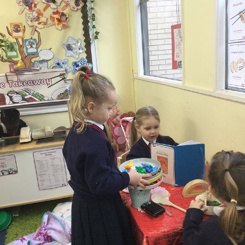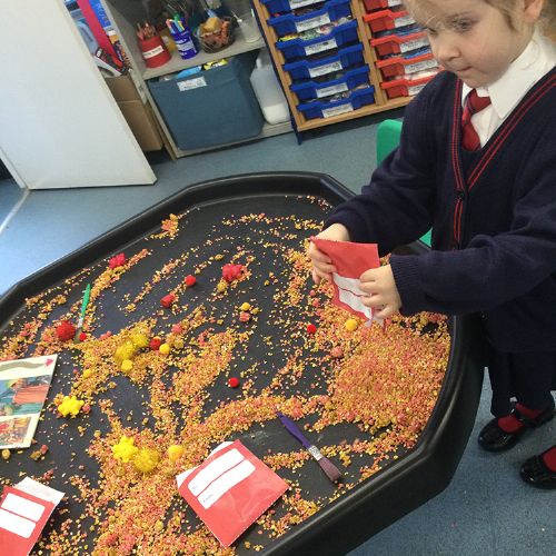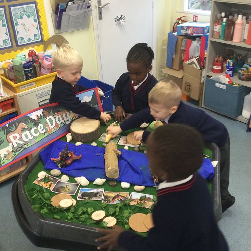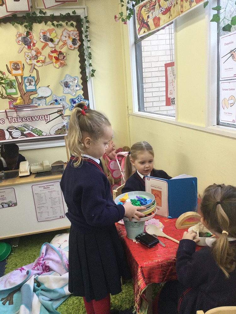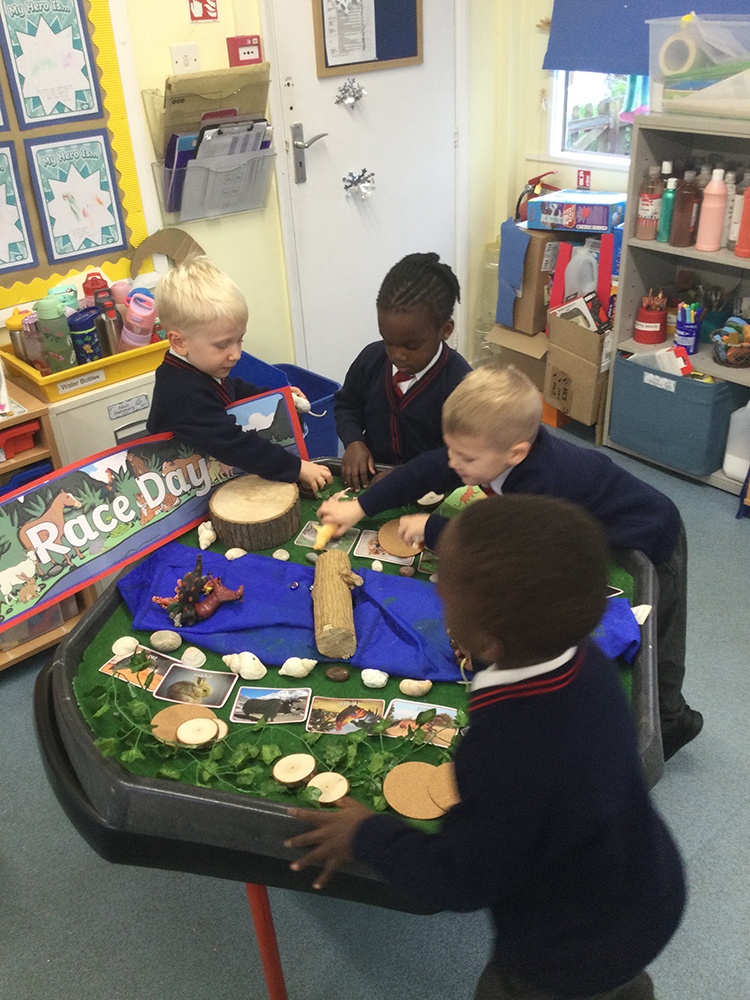 During literacy, we read the story of The Great Race, in which the Jade Emperor challenges all the animals to a race, to earn a year in the Chinese Zodiac calendar. The children came up with some fantastic ideas about how each animal could cross the river and they were shocked when Rat pushed Cat into the water, so he wouldn’t win. We all agreed that Rat was feeling jealous and that this wasn’t a kind thing to do to his friend. Some of the children then chose to hold their own animal race in the small world area.