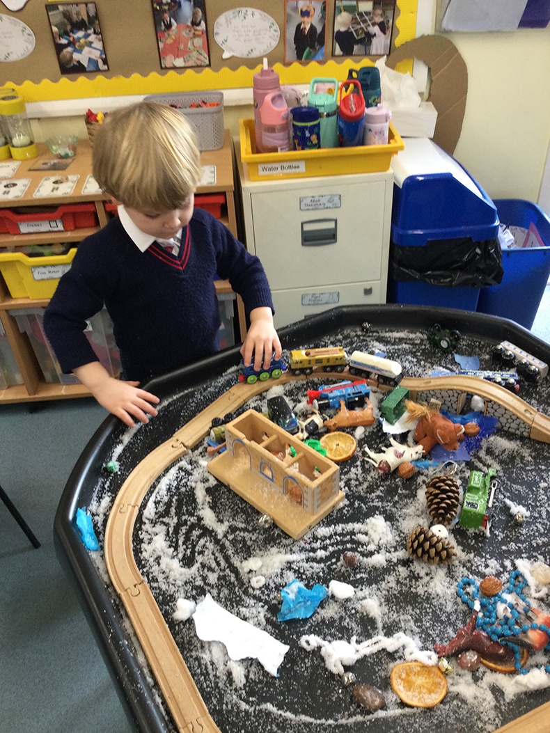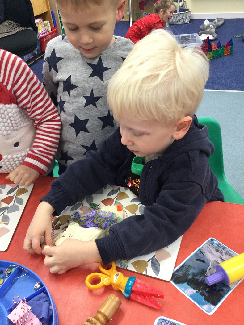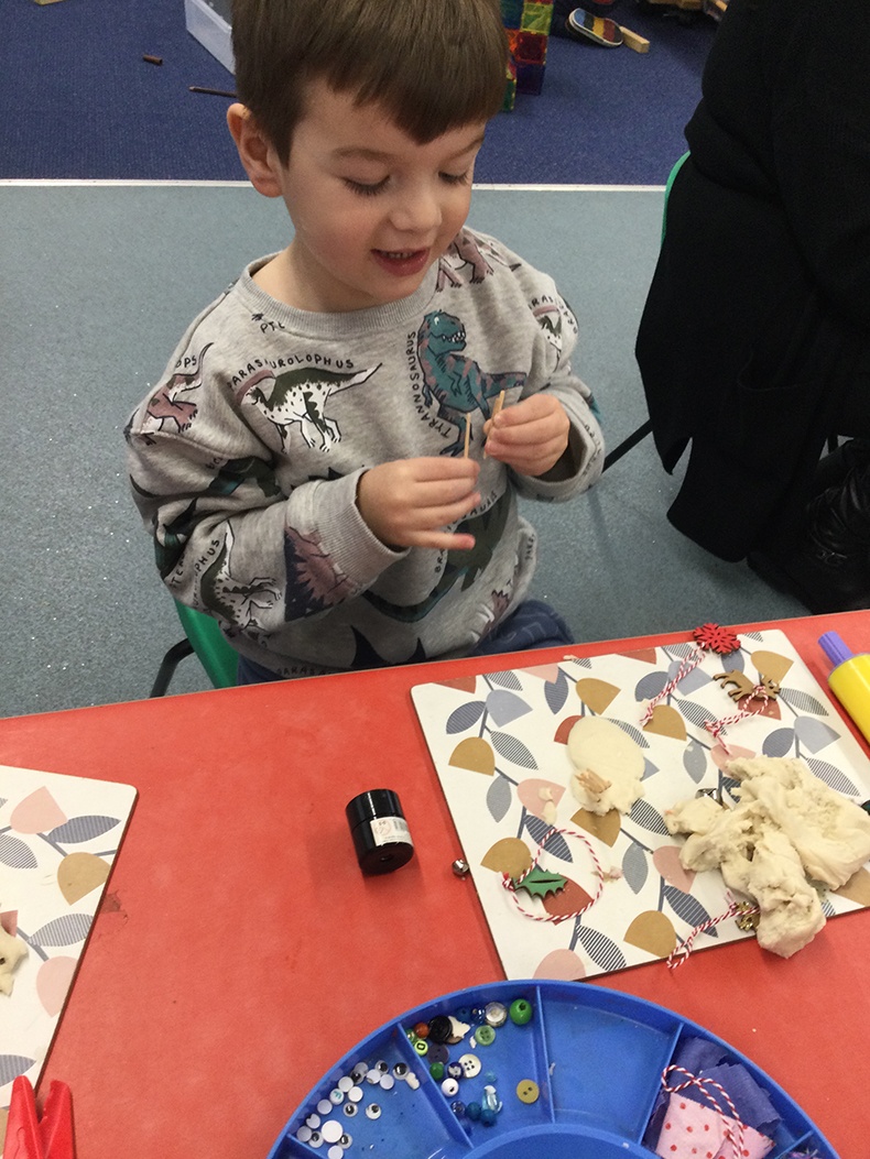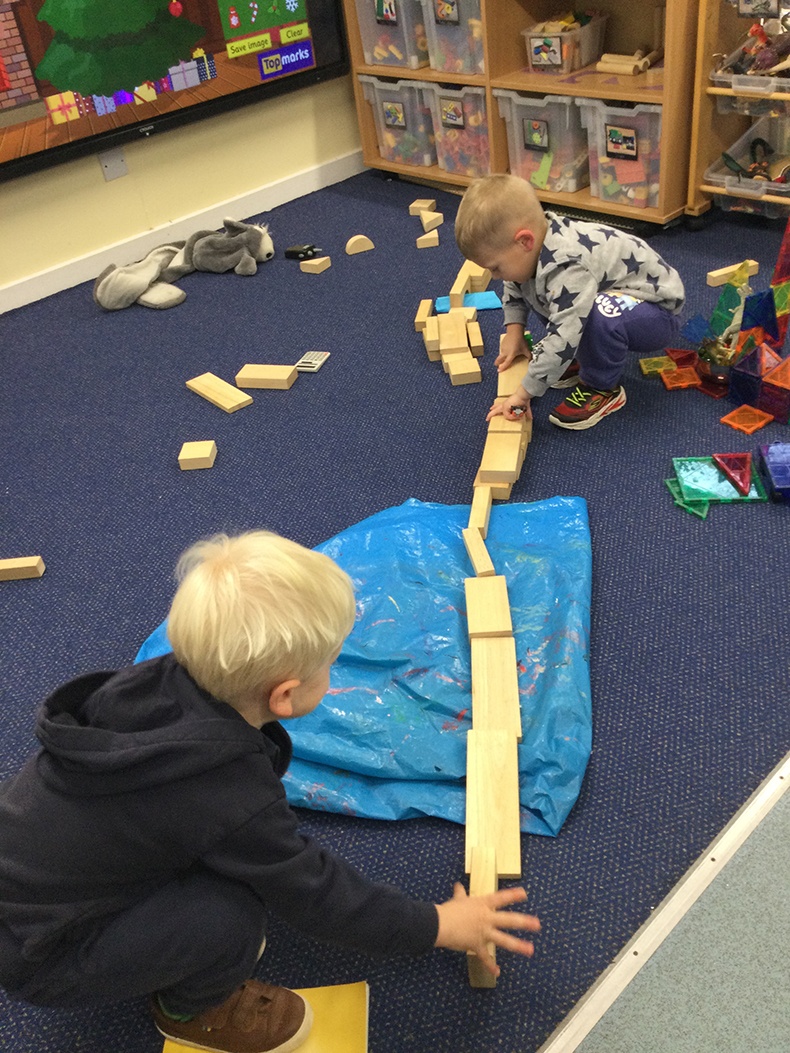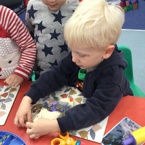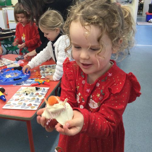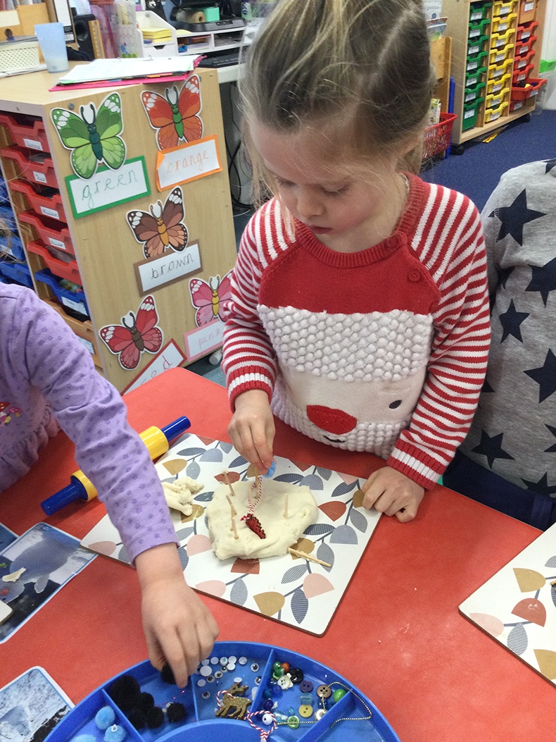 In between being superstars on stage and in the audience, Transition have enjoyed some playing time in the classroom this week. Together, we read The Gingerbread Man. The children were excellent at remembering each of the characters who chased after the gingerbread man, in the right order! We then worked together to create a gingerbread man scene in the small world area and we added a little bit of snow for some Christmas magic. The children decided to add a train track to our village too, to help the gingerbread man to escape. During their play, some of the children explored careful counting, as they added the correct number of buttons to each gingerbread man. We also enjoyed using craft materials and other loose parts to decorate and design our own gingerbread people as we made some transient art. The children were very imaginative, adding lots of detail to their gingerbread families, even adding some pets too. Some children also decided to build a fantastic bridge using wooden blocks, to help the Gingerbread man cross the river without talking to the sly fox.