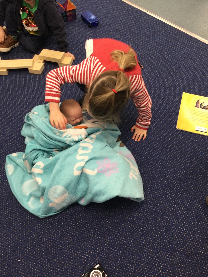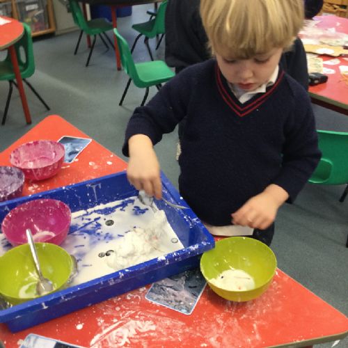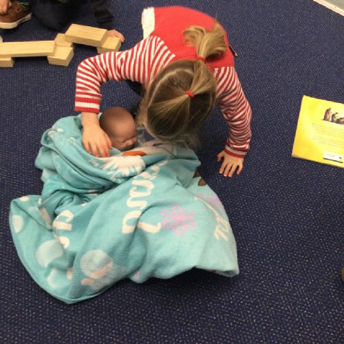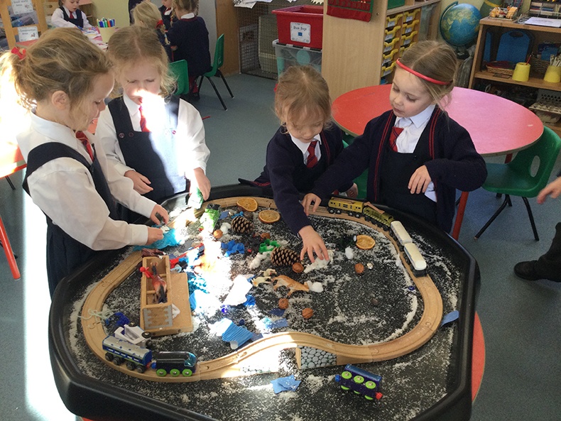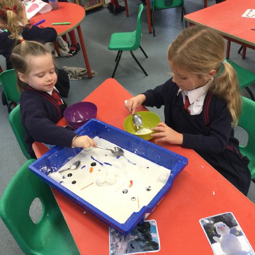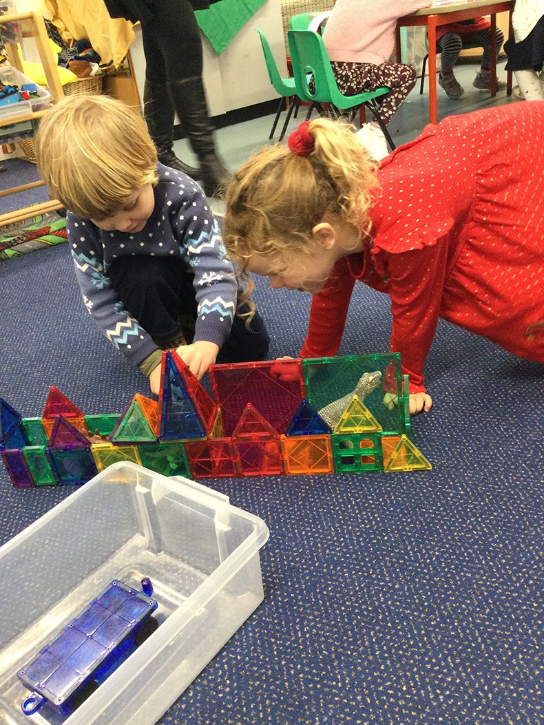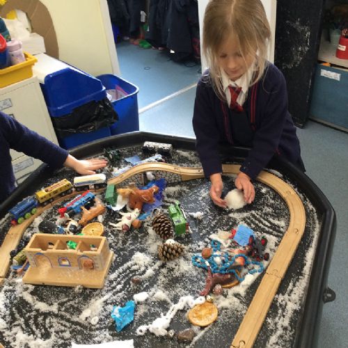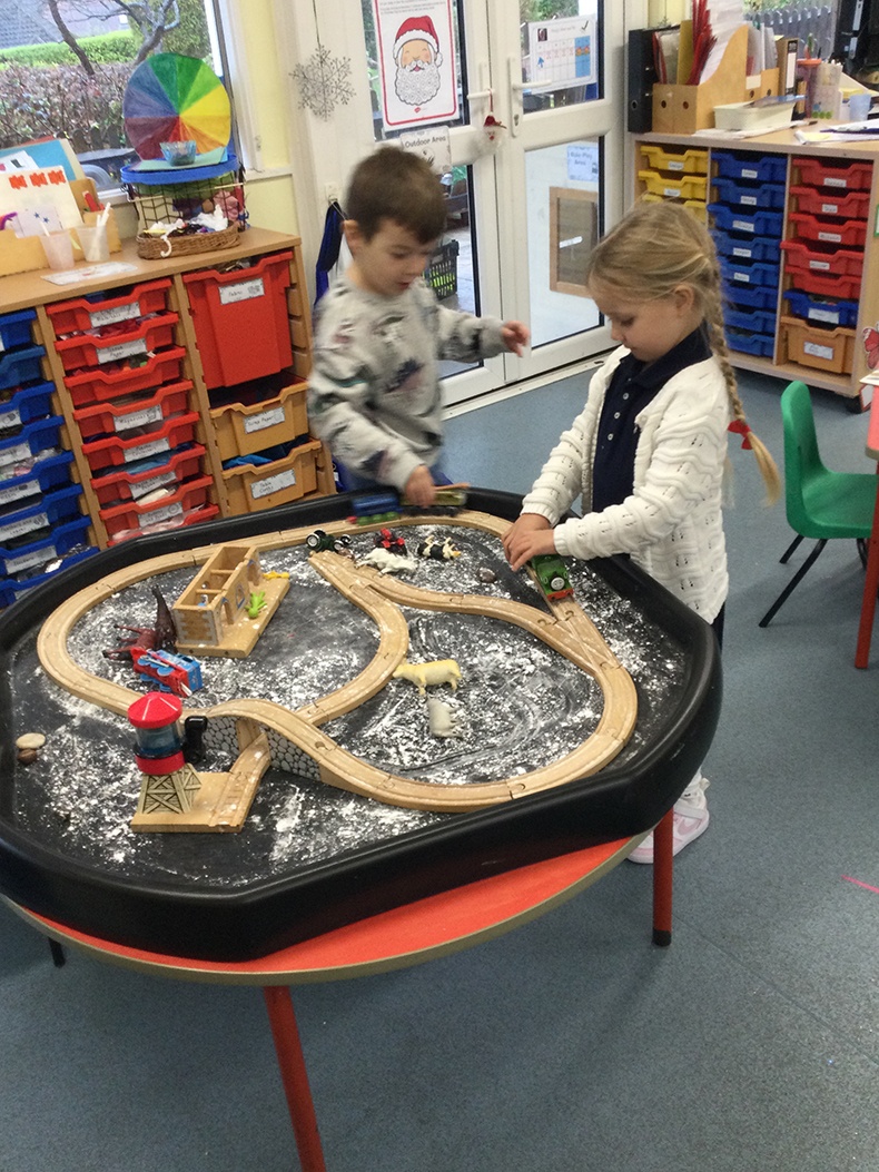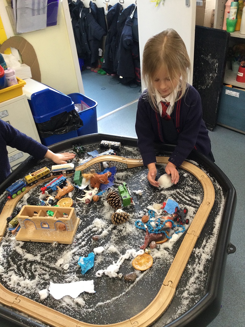 In between being superstars on stage and in the audience, Transition have enjoyed some playing time in the classroom this week. Together, we read The Gingerbread Man. The children were excellent at remembering each of the characters who chased after the gingerbread man, in the right order! We then worked together to create a gingerbread man scene in the small world area and we added a little bit of snow for some Christmas magic. The children decided to add a train track to our village too, to help the gingerbread man to escape. During their play, some of the children explored careful counting, as they added the correct number of buttons to each gingerbread man. We also enjoyed using craft materials and other loose parts to decorate and design our own gingerbread people as we made some transient art. The children were very imaginative, adding lots of detail to their gingerbread families, even adding some pets too. Some children also decided to build a fantastic bridge using wooden blocks, to help the Gingerbread man cross the river without talking to the sly fox.