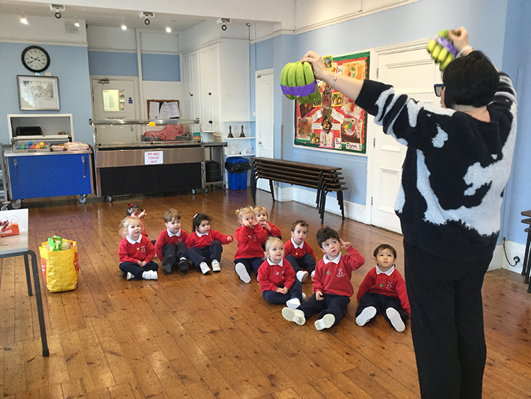 The week started with a visit to the Old Hall to collect our weekly shopping. We spoke about all the different groceries and the variety of colours. The children listened to the instructions and then carefully placed everything inside the bags.