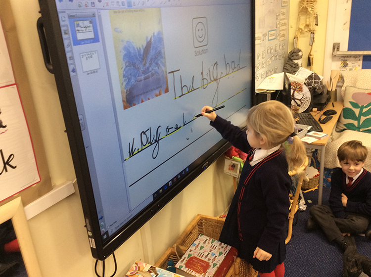 On Thursday, we read The Three Little Pigs and focused on the solution to the story. Together we wrote a sentence about the ending of the story and then the children independently wrote the same sentence in little groups. They are working very hard to use finger spaces and write all the sounds they can hear in words.