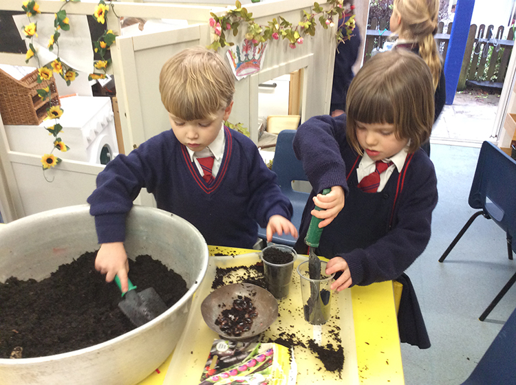 Although we did not have any magic beans (that we know of!) we thought we might plant some runner beans of our own. The children were confident that the beans would need soil, water and sunshine to grow. We discussed the conditions the beans would need and read the story The Tiny Seed by Eric Carle to learn more about this and how seeds can be transported from place to place by the wind or animals.