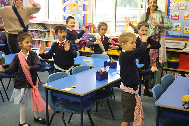 They have been talking with the children about festivals from their culture and how important they are to their communities. The children had great fun learning how to dance Bangra.