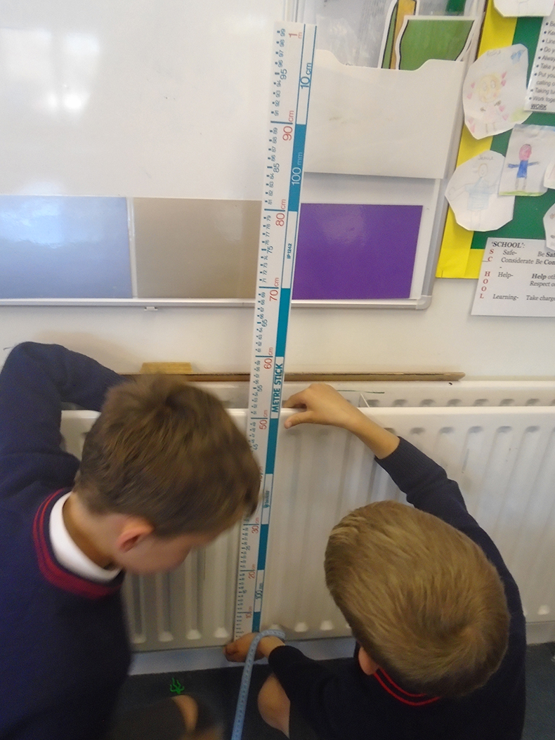 In maths, the children have been converting measurements. They could choose a selection of rulers and tapes to measure items from the classroom. They had to convert cm to m and m to cm.