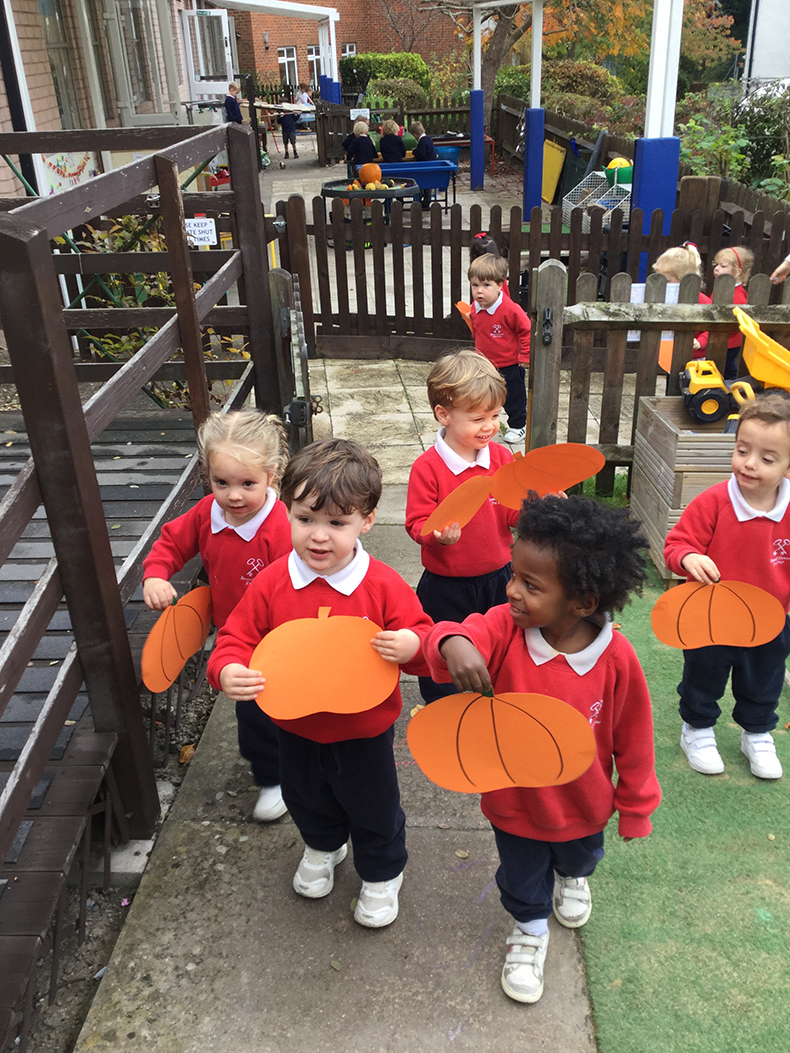 Some spooky pumpkins escaped from our classroom on Tuesday so we ventured around the school grounds to recapture them. Continuing with the Halloween theme, we spent some time counting spooky plates during carpet time. The Robins also spotted pumpkins on our Talk for Learning poster. It was great to hear them make connections with picking pumpkins at home, too.