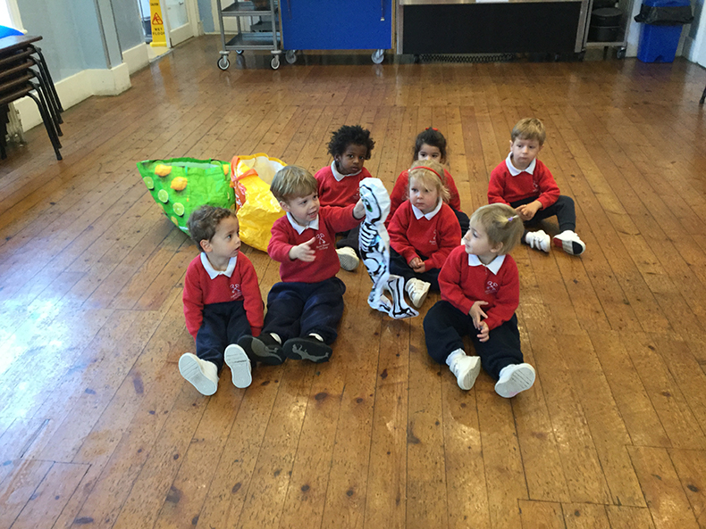The letter explained that he had joined us for a week of spook-tacular and fang-tastic fun! After arriving in the Hall, everyone worked as a team to pack the reusable bags (including Funnybones) and once back in class, the Robins helped to unload the groceries.