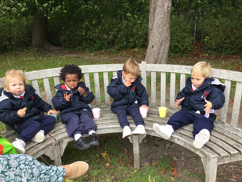 It has certainly been a very blustery week but we didn’t mind as it added to even more fun! We enjoyed several walks around the school grounds and a hot chocolate treat was enjoyed by all. Never missing a photo opportunity, we took a selfie on the bench whilst watching the older children take part in PE.