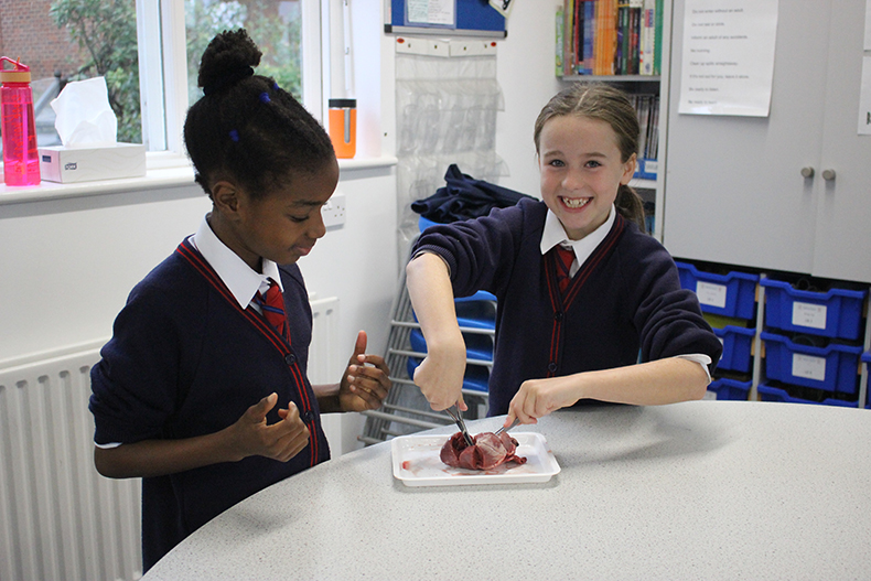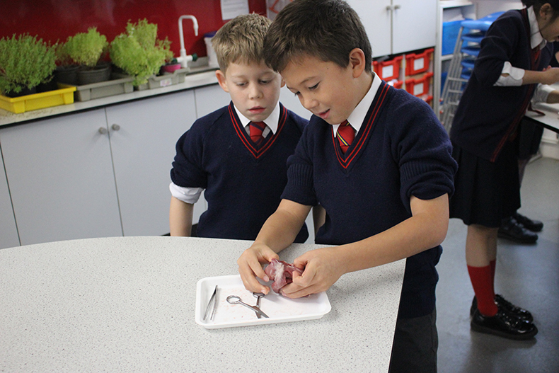 To better understand the effect, they needed to understand the structure and function of the components of this system, including the heart. On Thursday, they dissected a lamb heart and they were able to identify the four chambers (right and left atria and ventricles), as well as the main veins and arteries into and out of the heart. They saw the blood vessels that feed oxygen and glucose to the heart itself and they learnt that it is these that are blocked when a heart attack occurs. They were most excited though to locate the heart strings, which prevent the heart valves from inverting under pressure.