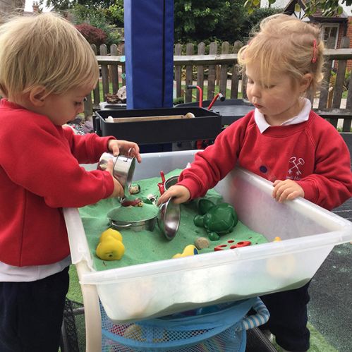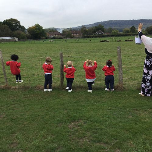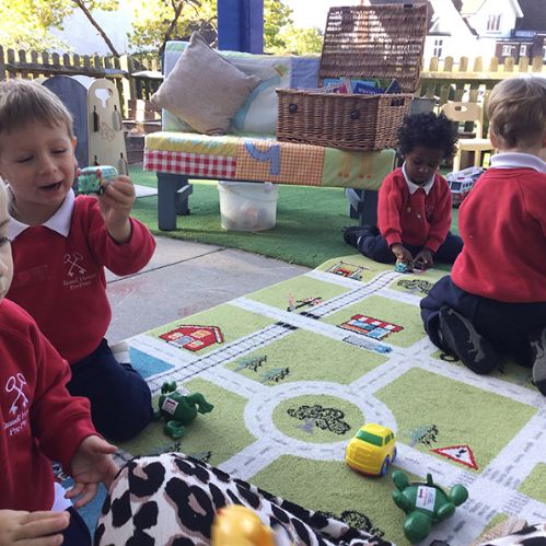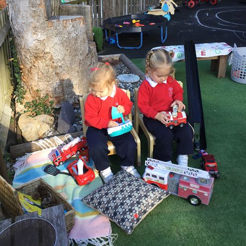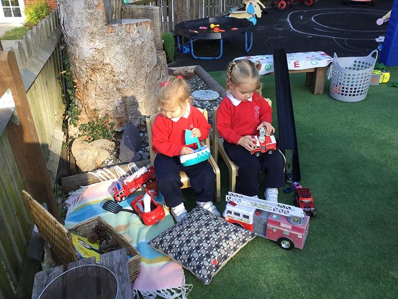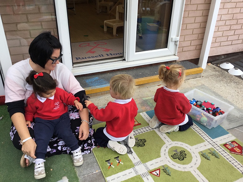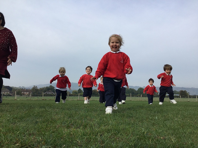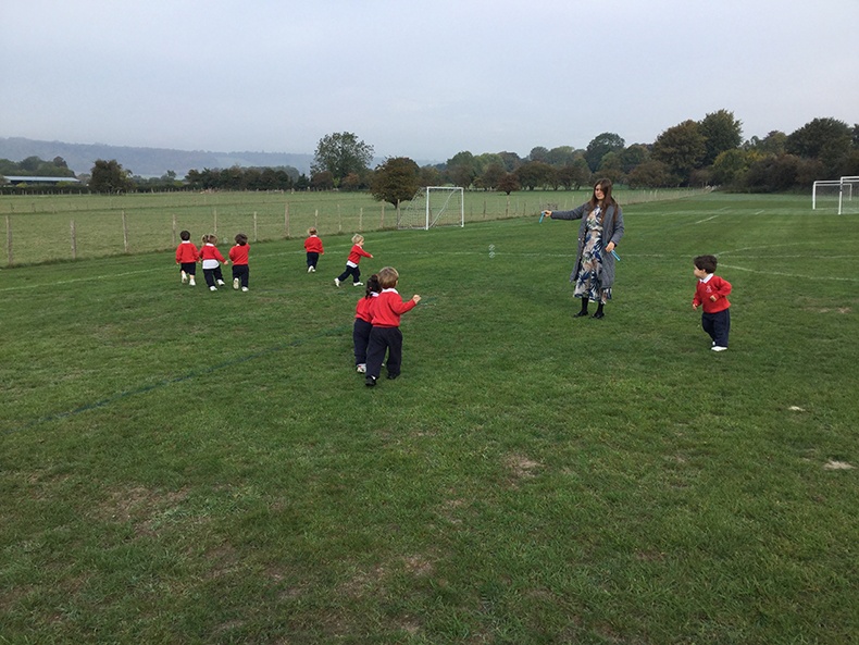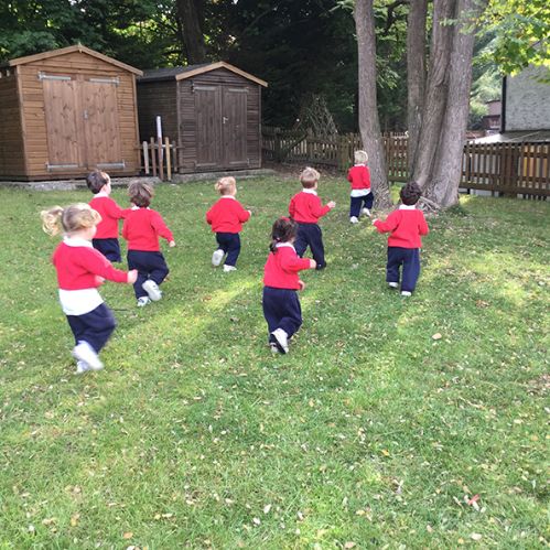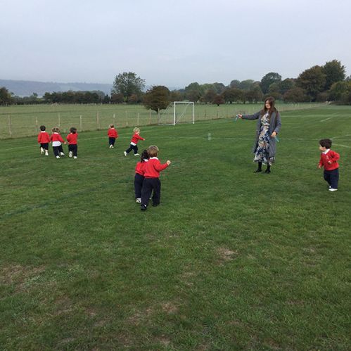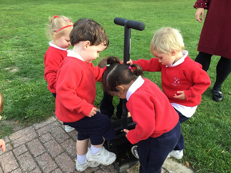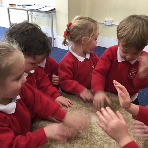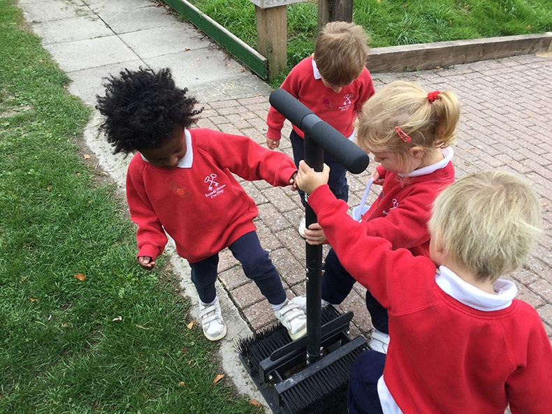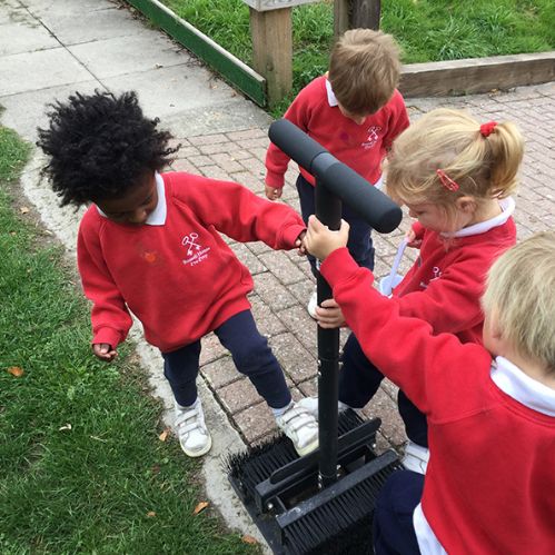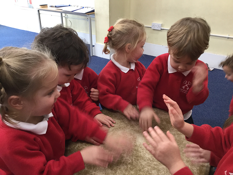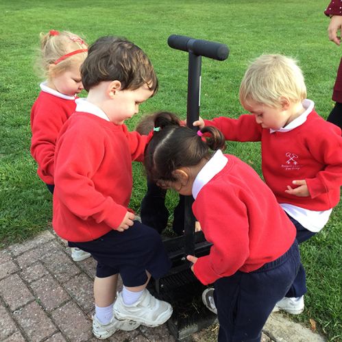 Lots of fun was had exploring the school grounds. We visited the sheep, chased bubbles and rolled around on the grass. The children enjoyed using the shoe cleaner to ensure their shoes were not muddy.