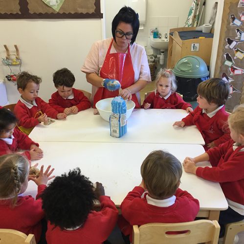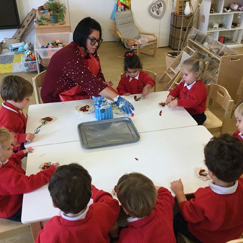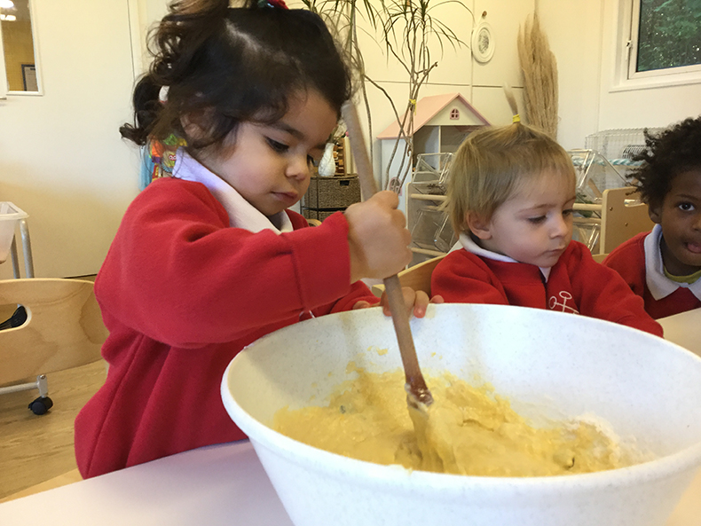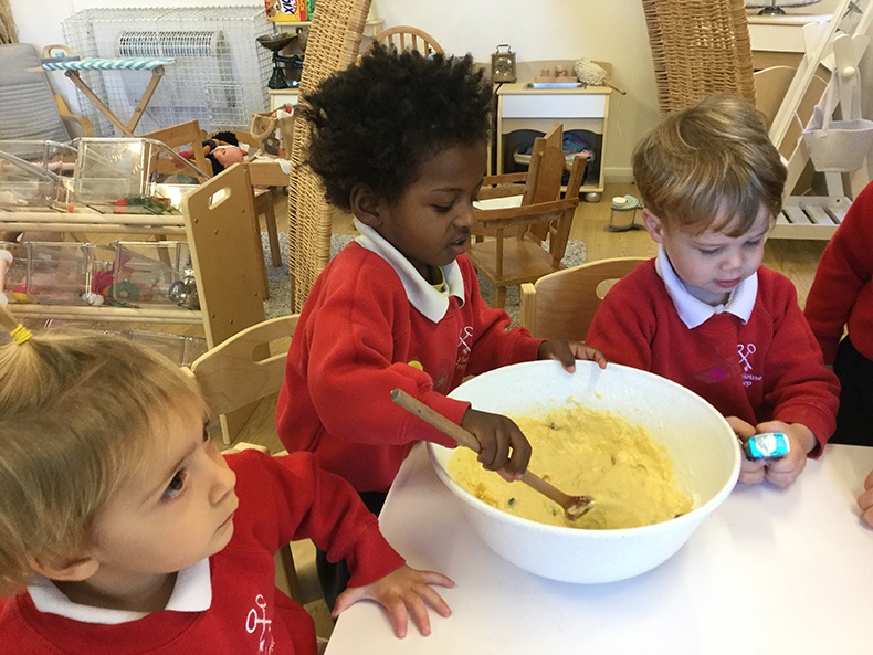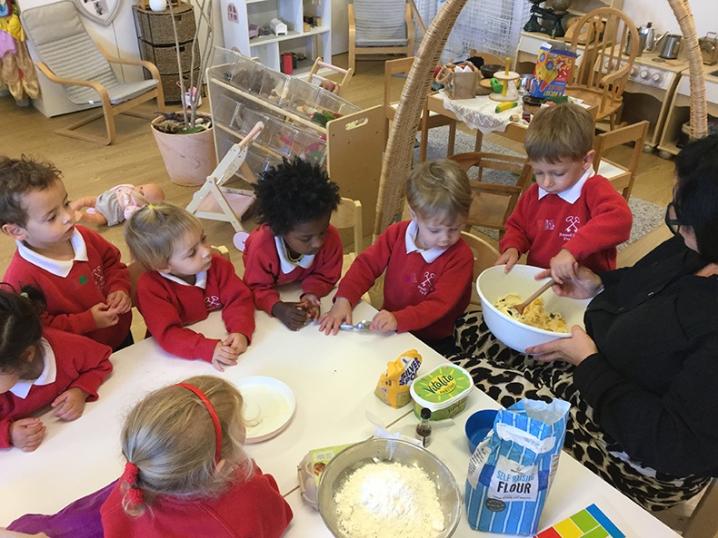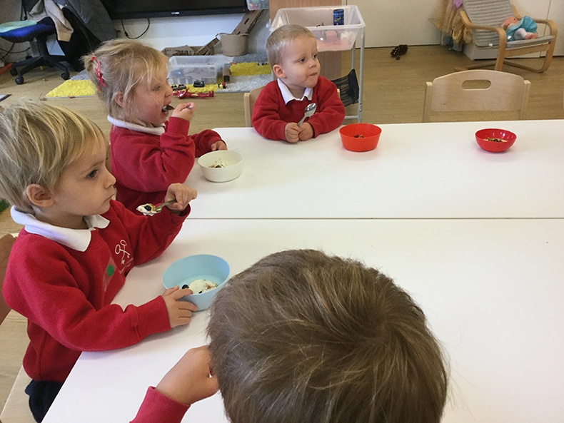 Once back in class, we made a yummy blueberry and pineapple cake. The children spoke about different types of fruit and they used some great describing words, such as spikey, shiny and sweet. The cake was delicious and it was certainly enjoyed by all. Miss Ruby and I do hope that all the mummies and daddies had a little taste, too.