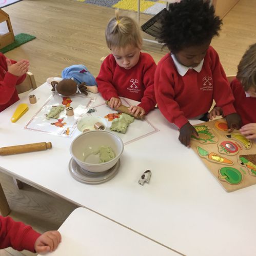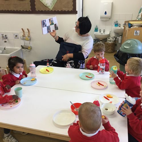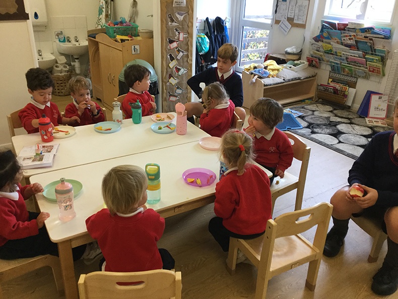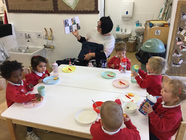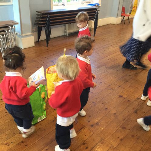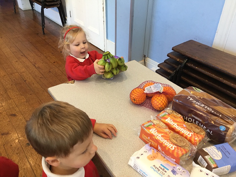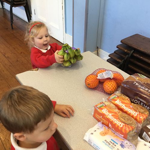 On Monday, we collected our shopping from the Old Hall and this kick-started our Healthy Eating topic. A discussion was had around the variety of fruit and vegetables and we also used lots of mathematical language. There was a focus on bigger than and smaller than and the Robins did a great job of identifying the biggest and the smallest.