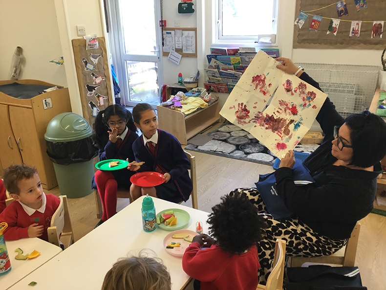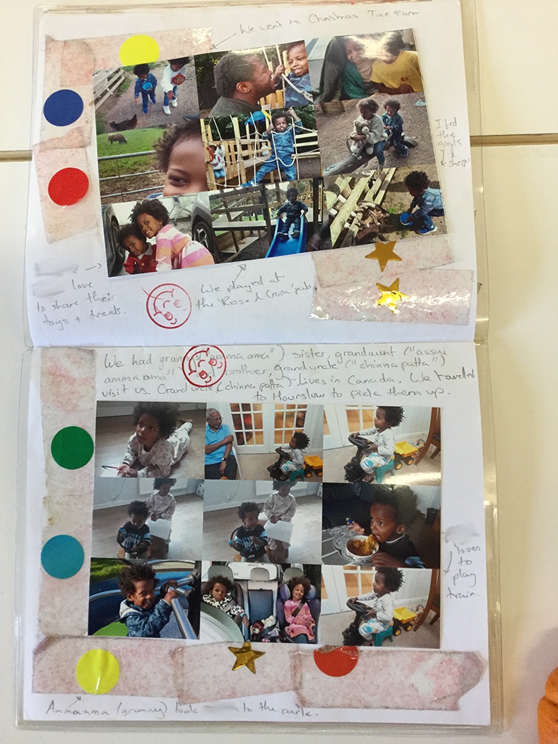 Miss Ruby and I thoroughly enjoy listening and looking at the children’s weekly news in their Home/School Journals. It was lovely to see one of our children display their daily stickers in their books. There were also some lovely photos which translated the child’s family members in his home language, Tamil.