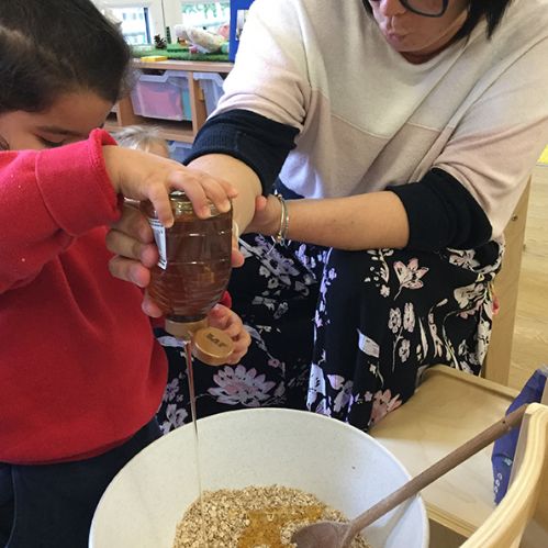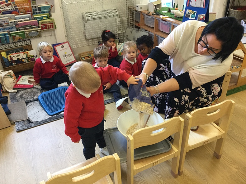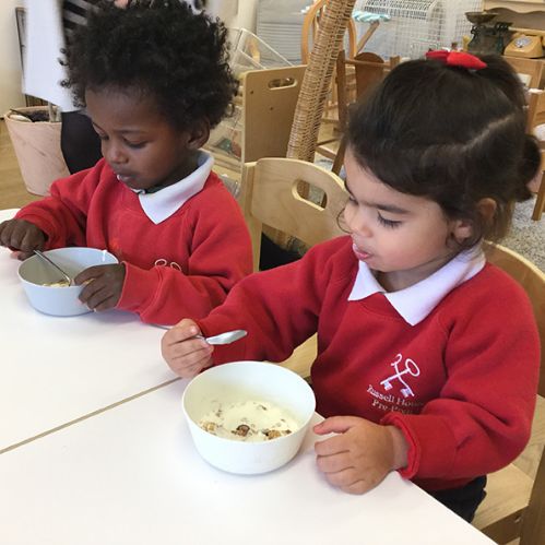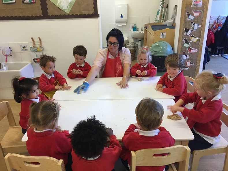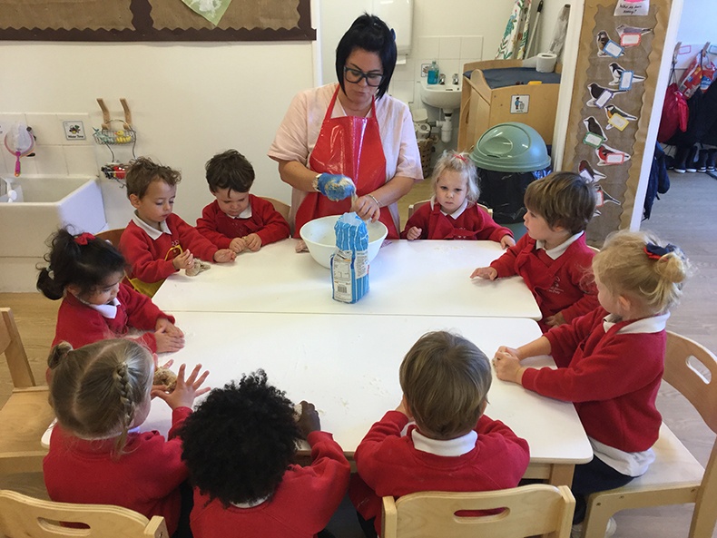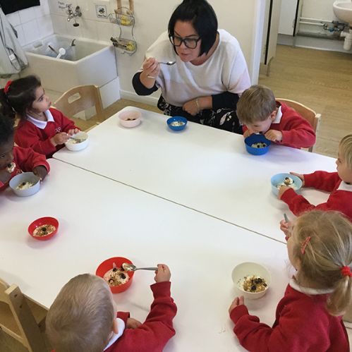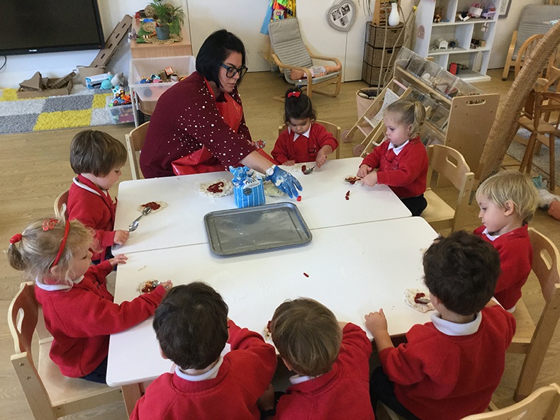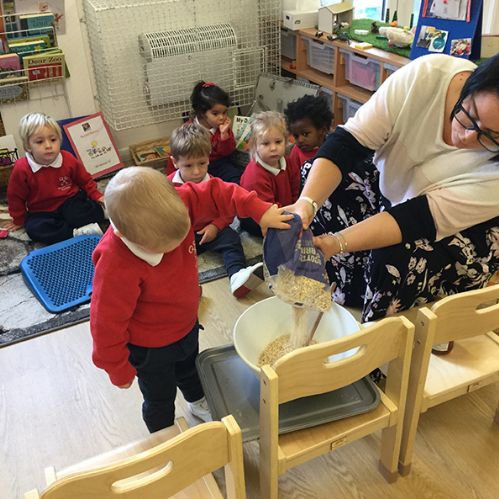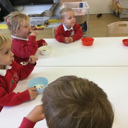 Following on with cooking, we made seeded rolls, Greek yogurt granola pots (made with homemade granola) and pizza. Our homemade granola tasted super yummy and as a treat, the Robins also enjoyed some for their snack. There were lots of clean, empty bowls. Well done, Robins!