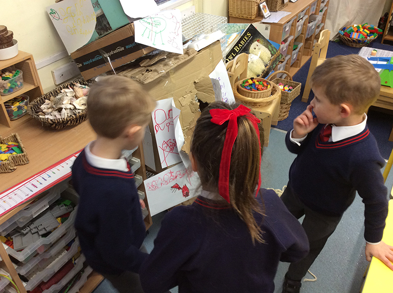 Once they were sure the dinosaurs were not in the classroom, the children started their detective work to try and find out what had happened. Together they shared their ideas about how they thought the dinosaurs might have escaped. They then discussed where they thought they might have gone and then formulated a plan about what to do about it!