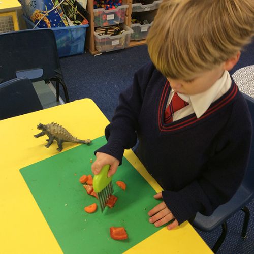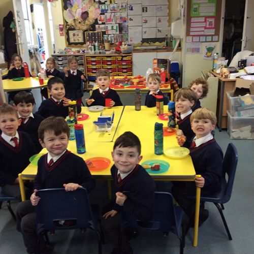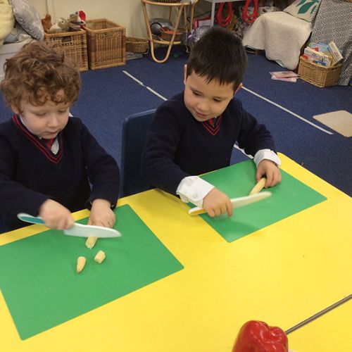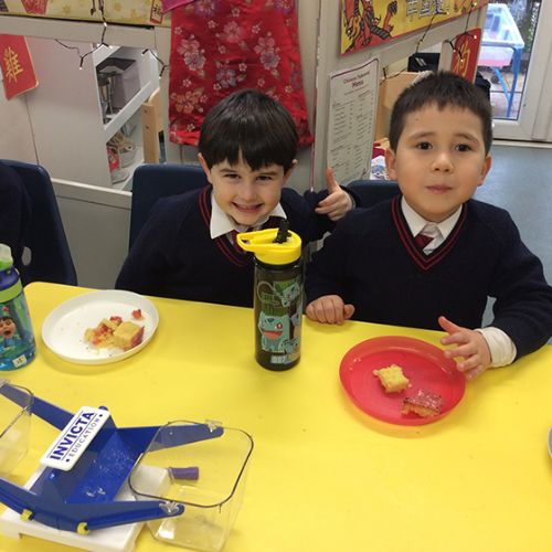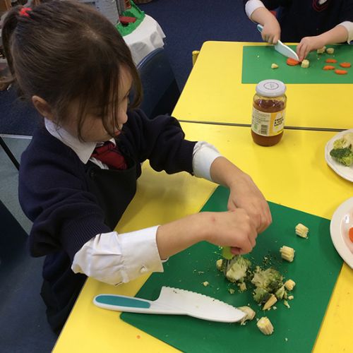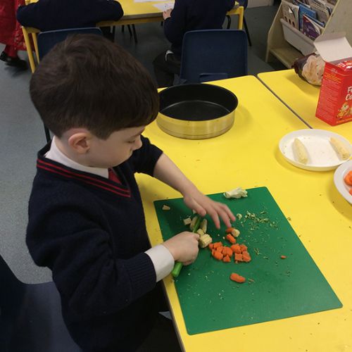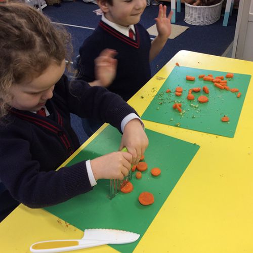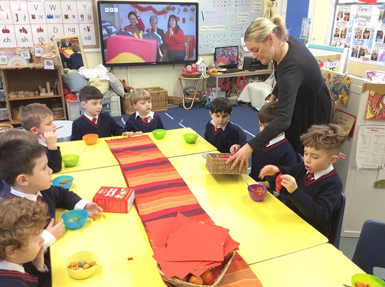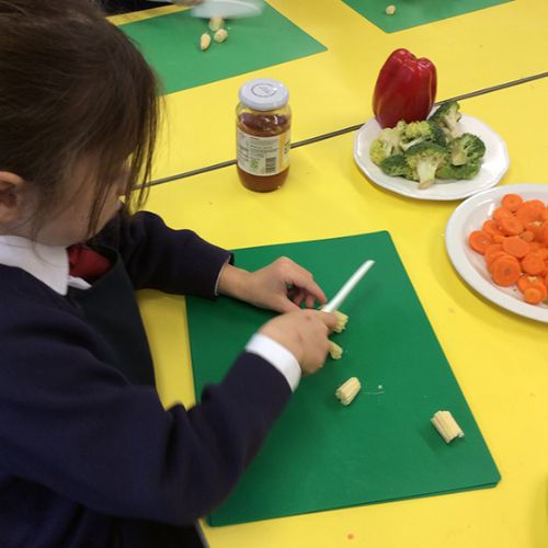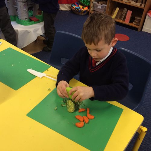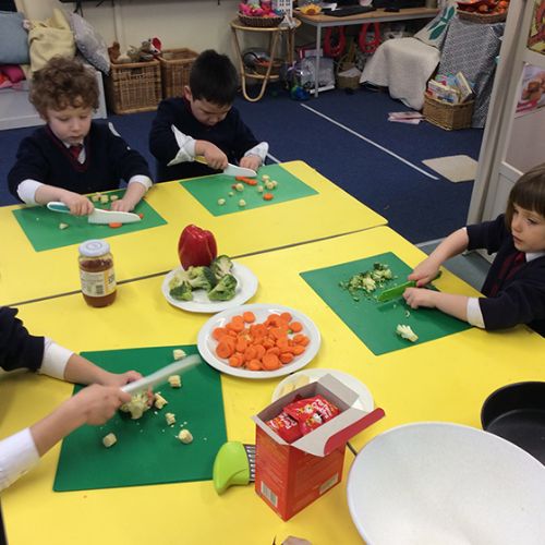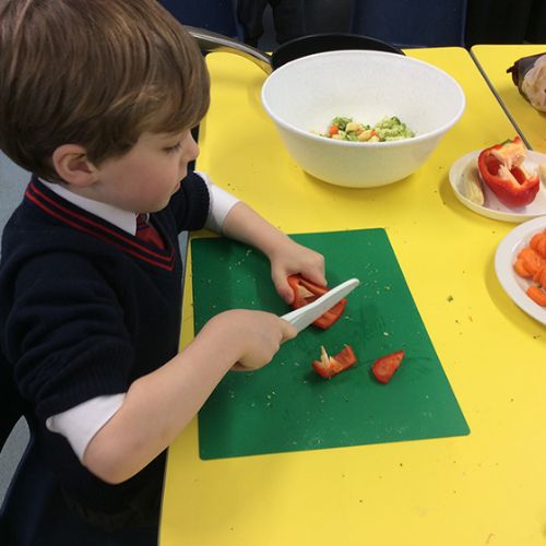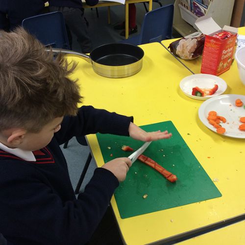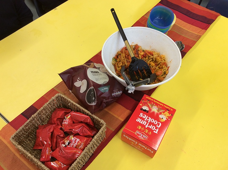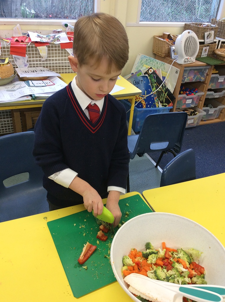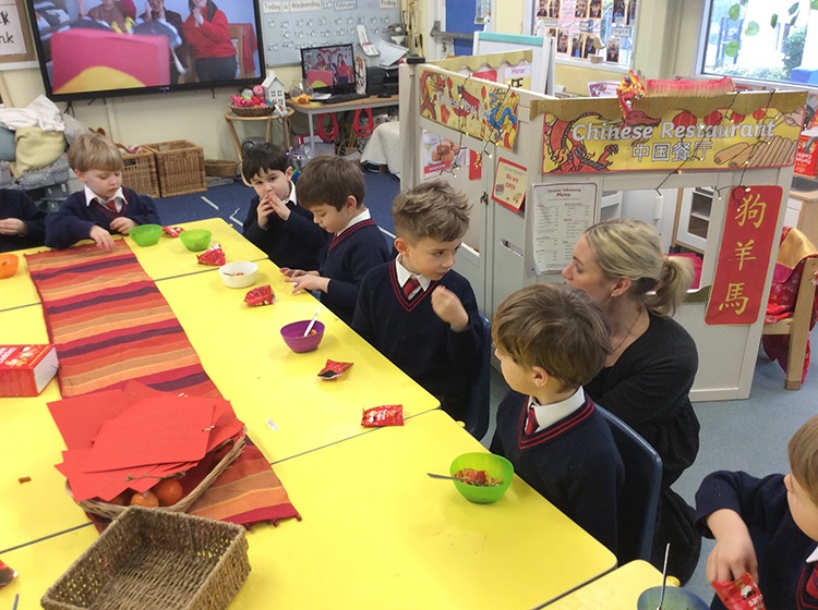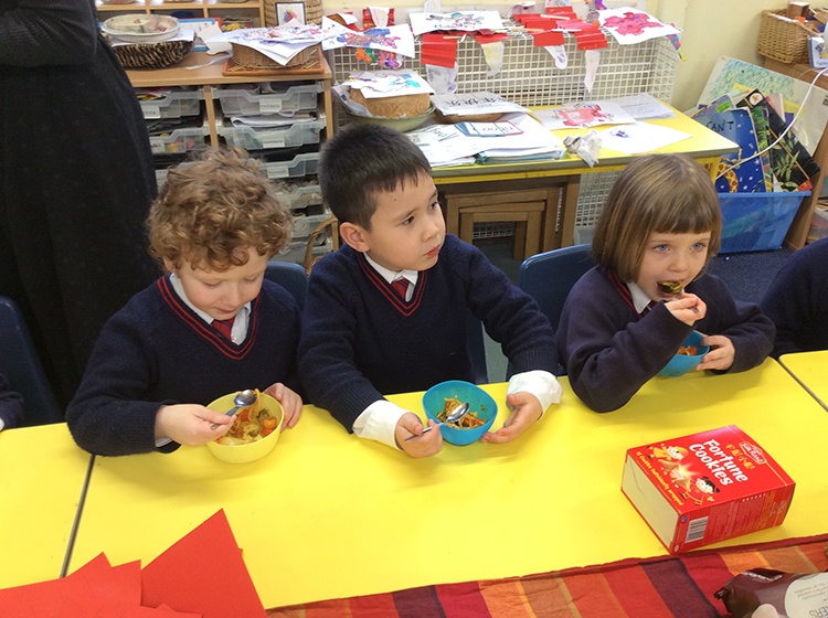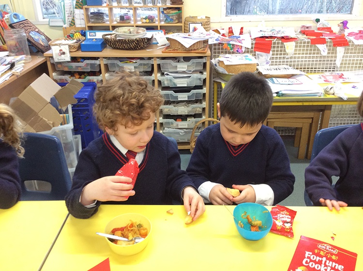 To further learn about Chinese New Year, Form 1 made their own stir fry! The children chopped peppers, broccoli, sugar snap peas, baby sweetcorn and carrots. Using the special safety knives, the children worked carefully to prepare the vegetables and discussed the importance of washing their hands and the vegetables before setting to work. Once all the chopping had been done we visited Robin's kitchen and cooked the vegetables and noodles in the wok. A tasty Kung Po sauce was added and the children enjoyed trying their creation. Everyone thought it was pretty delicious and the prawn crackers were also very popular. The children then enjoyed opening their fortune cookies and we read