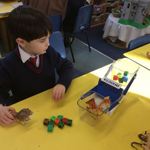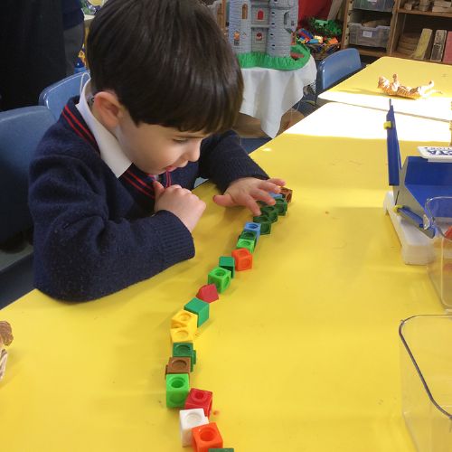 In maths this week, the children have been learning how to measure weight. We learnt how to use the bucket scales to compare two objects' weights using the vocabulary light, heavier or equal. The children then learnt how to use cubes to find the weight of different objects. By putting an object in one side of the scales and cubes on the other, we added cubes until the scales balanced. The children then counted how many cubes they had needed to add to be equal to the weight of the object.