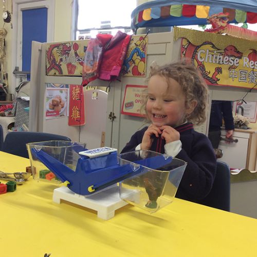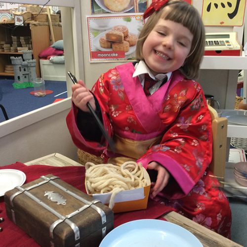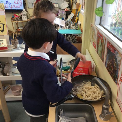 The Chinese Restaurant role play has also been very much enjoyed as the children have had fun writing down orders, preparing the food in the kitchen and pretending to be customers enjoying a meal.