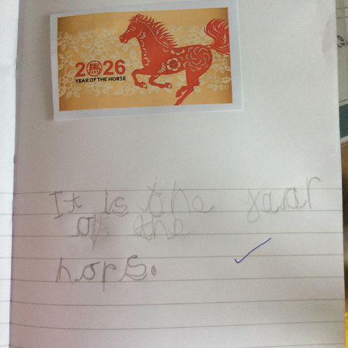 We also learnt about the power of the Lam Tsuen Wishing Tree. One of the age-old traditions of Chinese New Year in Hong Kong is a visit to this wishing tree in Tai Po. Visitors write their wishes on placards, tie them to a mandarin (for luck), and throw them onto the tree. It is believed that if the placard catches on a branch and stays, the wish will come true. Form 1 loved writing their own wishes and we secured them carefully to a mandarin. We had fun taking them to a tree in the paddock and trying to throw them into the branches, hoping they would catch. Fabulous writing is emerging as the children continue to develop their phonological awareness and their confidence to apply this in their writing is growing every day.