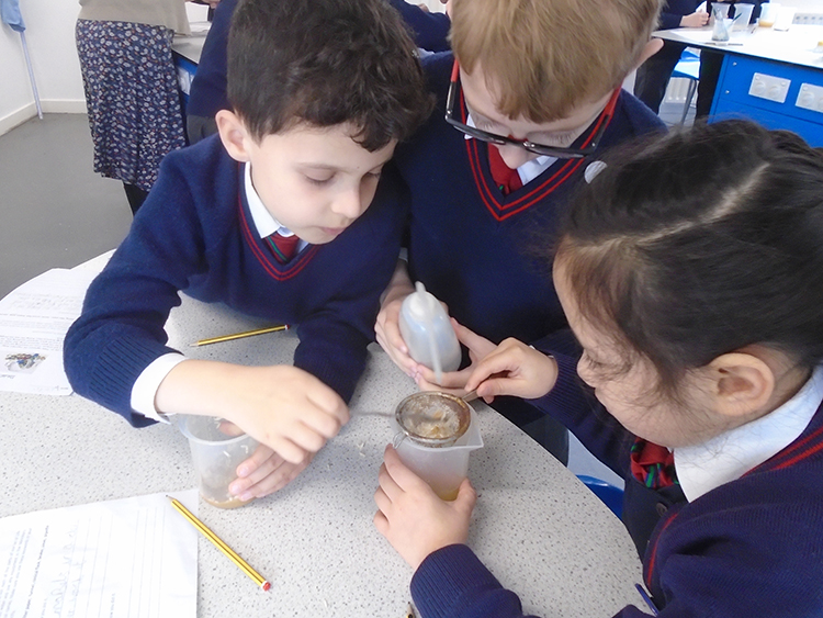 They have also had time to carry out an experiment in science. After keenly making a mixture of marbles, rice, sand, salt and water, the children were slightly perplexed when they were then asked to give all the separate components back! The marbles were quickly removed but the rice and the sand proved more of a challenge. The children are now in the final stage of separating the salt from the water.