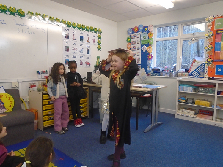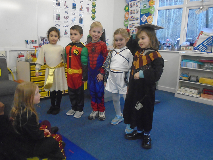 This week in English, the children have been retelling the tale of Handa’s Surprise by acting the story out and performing to the class. They have also written their own version of the story and they had to remember to use adjectives. The children were fascinated with all the different animals and thoroughly enjoyed discussing what they were. They wrote some fabulous stories after acting out their plays to the class.