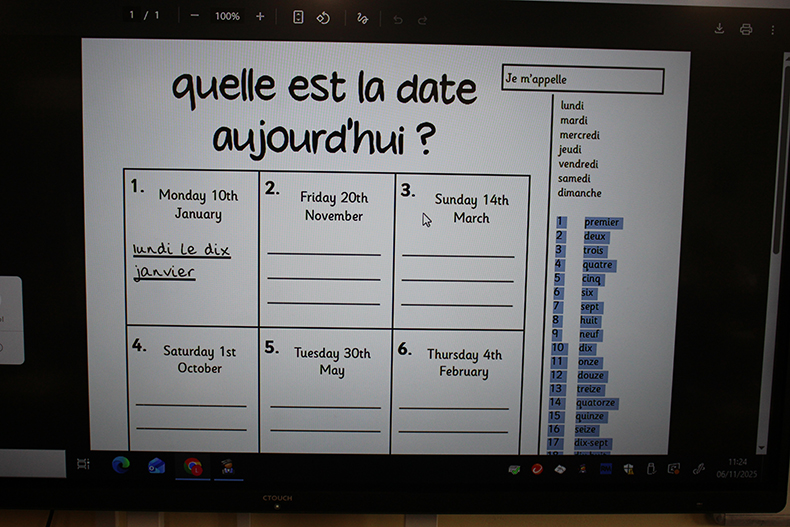 In French, they have been learning the days of the week and months of the year, both through written tasks and fun verbal activities. The children particularly enjoyed learning a catchy song to help remember the months, and have been practising writing out key dates such as their own birthdays in French.