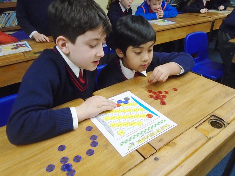 In maths, the children have been consolidating their knowledge of addition and subtraction of large numbers. They have been looking at ways to quickly complete calculations mentally and when they need to write things down. A fun way to practise this was in the form of a competitive game, rather like the game show Blockbusters, to reach the other side whilst also blocking their partner.