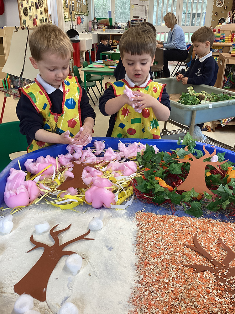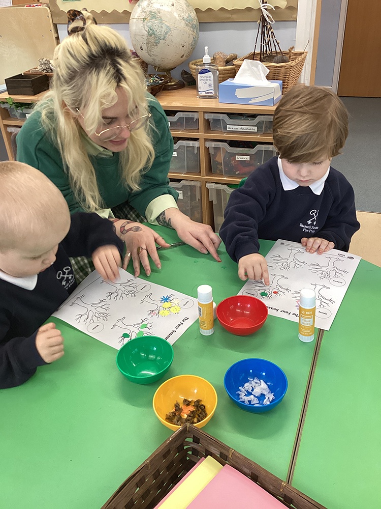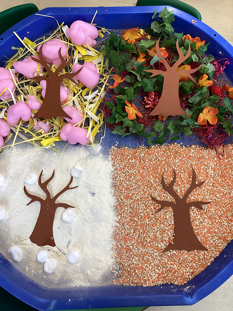 The children loved exploring our sensory seasons tuff tray, this was a great talking point to reflect on the things we have learned. We also made our own trees for each season!