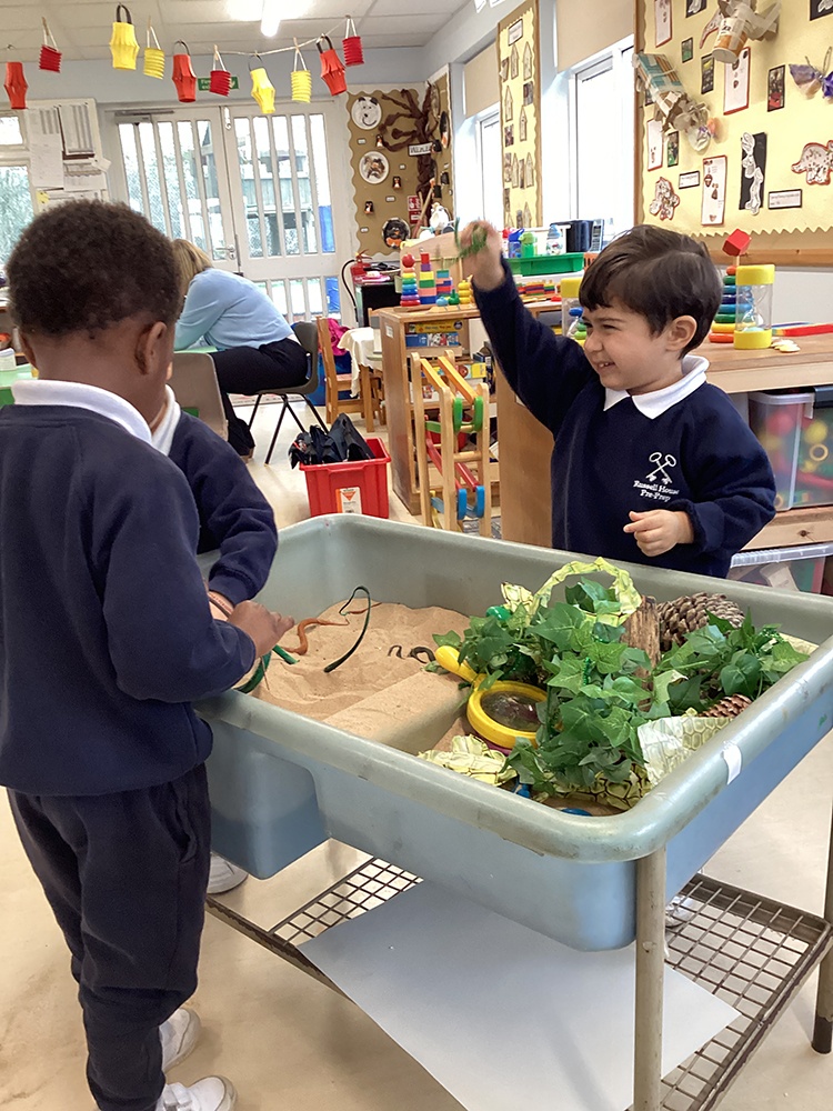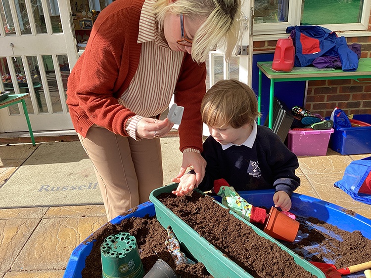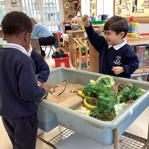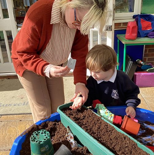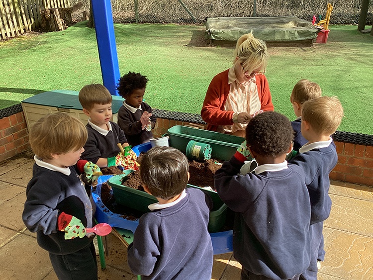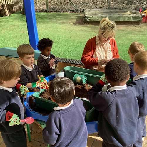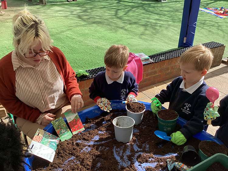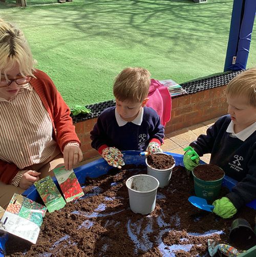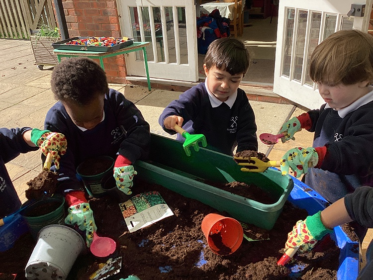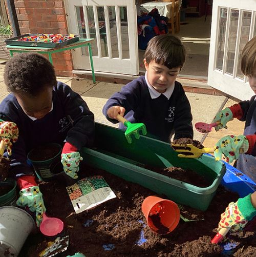 The Nursery class has also been doing some gardening and planting this week. We've been practising putting on our gardening gloves and using tools like trowels and forks. The children enjoyed filling up a range of pots with compost, planting the seeds, then placing them carefully in our greenhouse. They have also been remembering to water them each day!