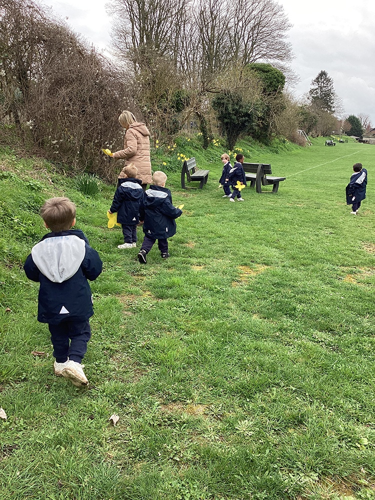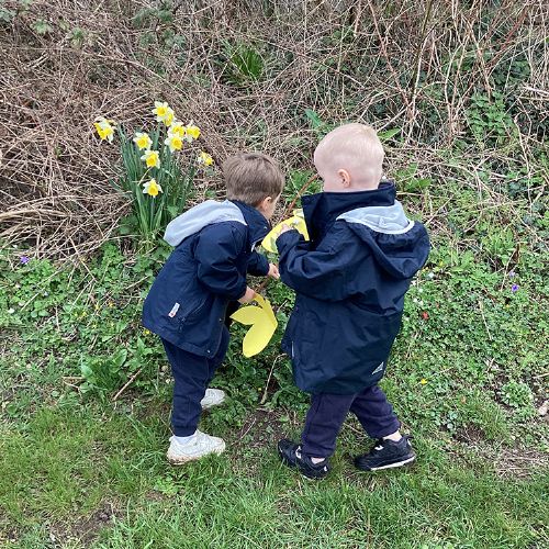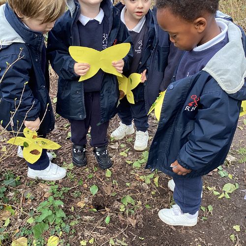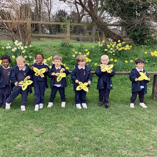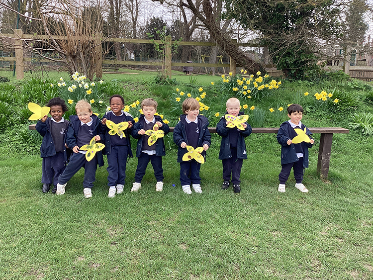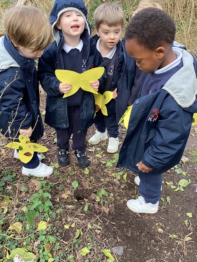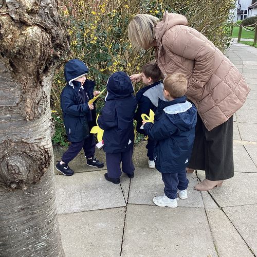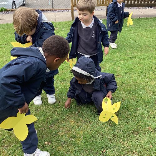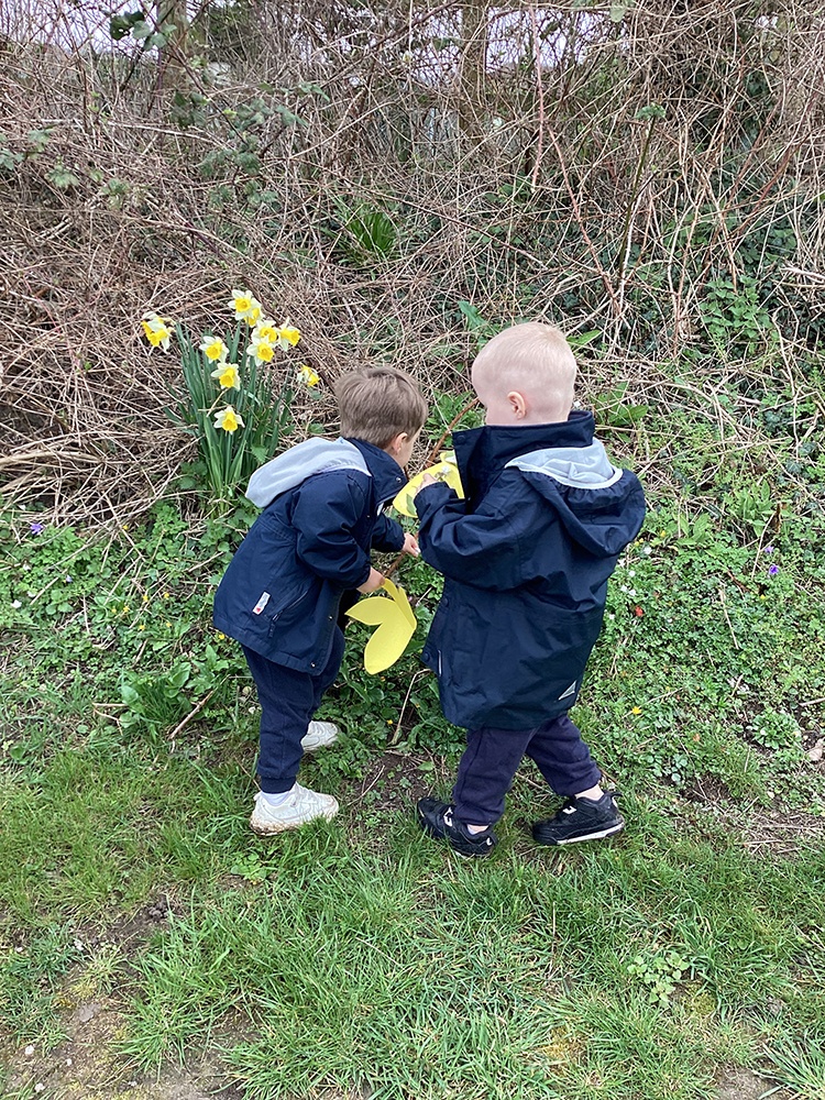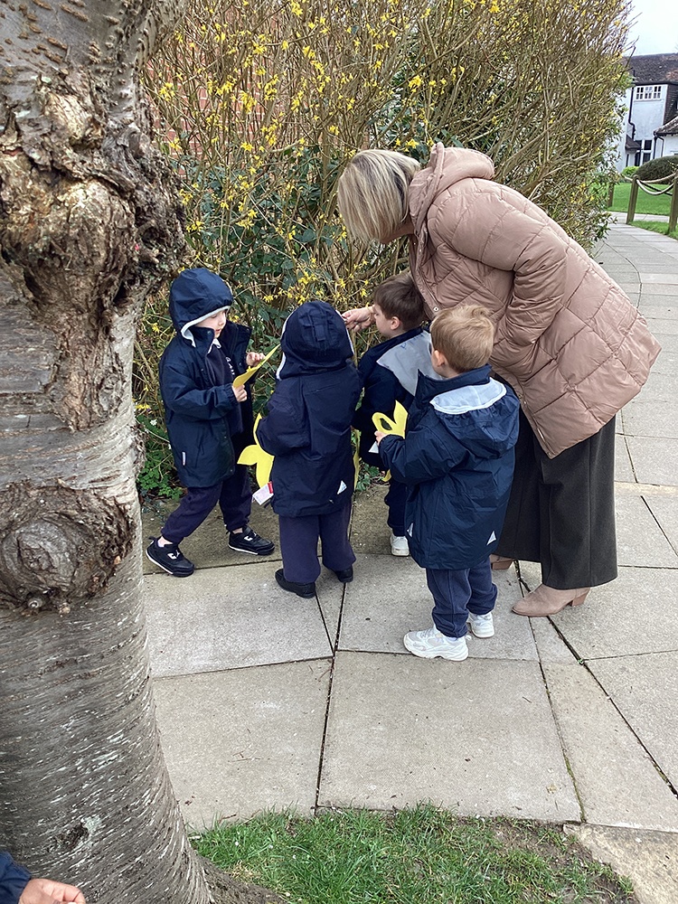 Another spring activity was a nature walk around the school. The children all looked out for the signs of spring and were able to decorate their butterflies with leaves, petals and feathers that we found around the school!