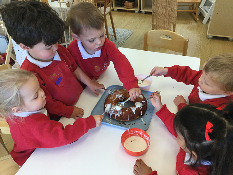This week’s cooking activities consisted of banana and sultana cake, focaccia bread, a giant cookie and sandwiches. Cooking provides many experiences for children and it is a fundamental life skill as they learn how to spread, chop, mix, clean the table and tidy away.