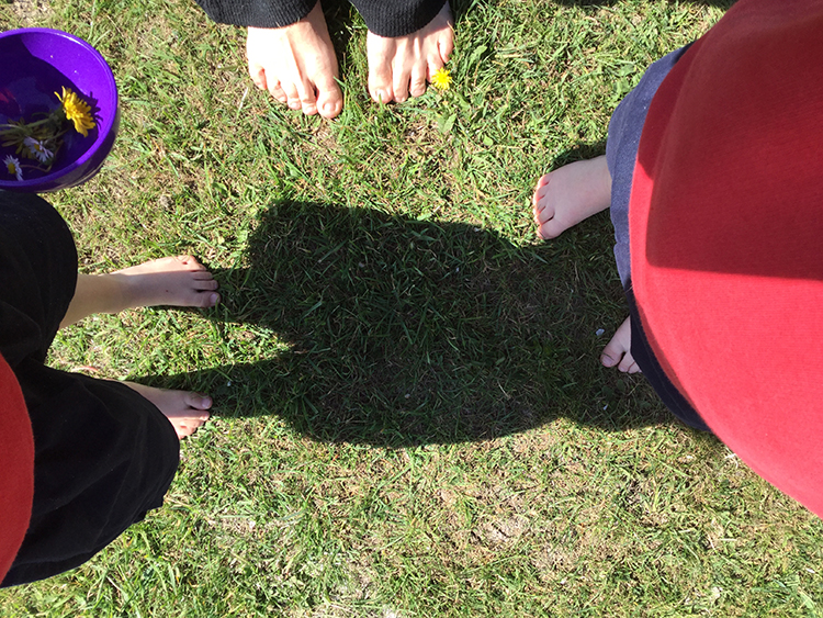 A big emphasis is placed on the outdoor environment in Robins and there is much research to support the importance of the great outdoors and mental health. We removed the children’s socks and shoes whilst we sat on the field so they could experience the feeling of grass on their feet. Shoes can also sometimes cause stomping so it is good for children to experience walking barefoot as it will encourage natural muscle flexing. Whilst on the field, we all popped our legs in the air to feel the wind whooshing around our toes.