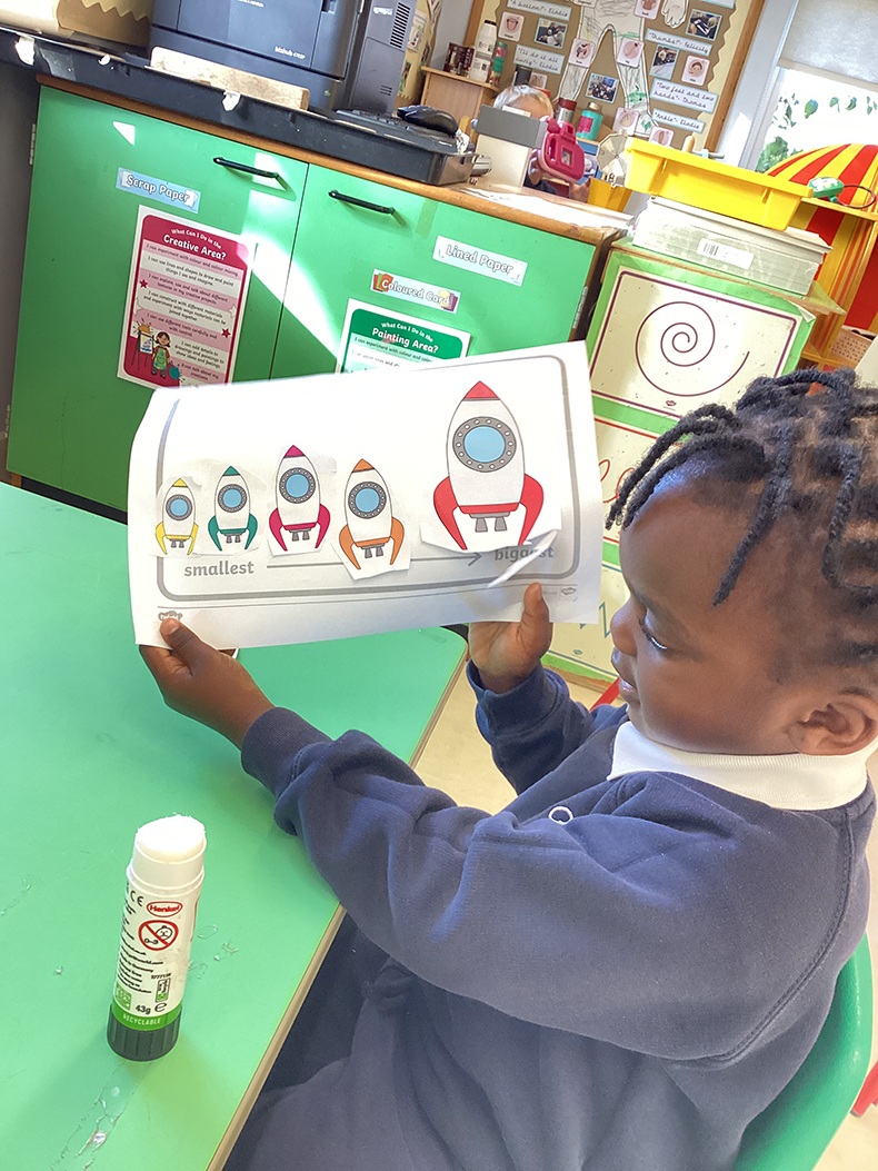 The children have also worked on their maths skills in an ordering activity. They had to cut out different sized space-themed objects and order them smallest to biggest; they all did amazing at this!