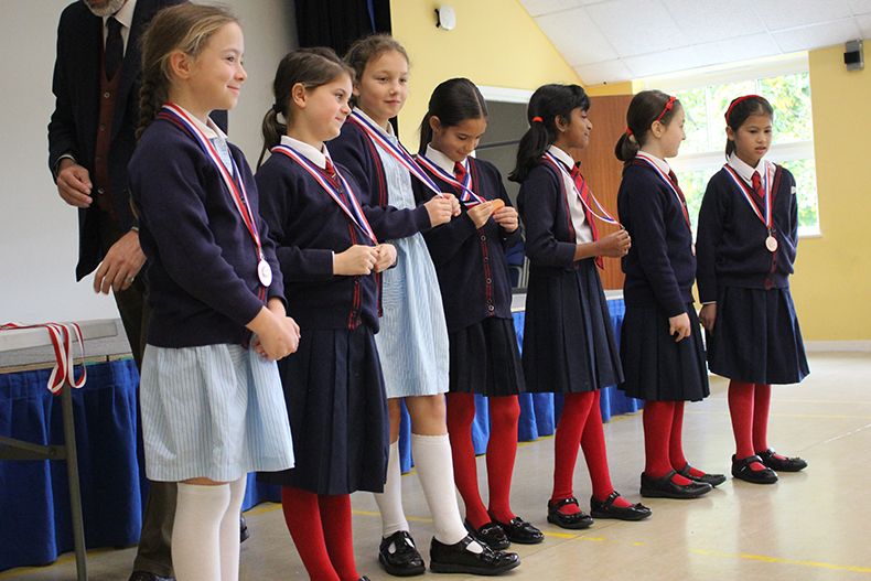 We took part in the tournament, which included eight schools, at The Hawthorns. First, we were part of a group with four schools, and we had to play three matches to qualify to the semi-finals. We won our first match 4-0 against Copthorne, lost the second match 1-0 against Rowan Prep, and won our third match 4-2 against The Hawthorns. It meant we made it to the semi-finals! In the semi-final, we lost 3-1 to St Michael's in a close match. We then played for 3rd place against Rowan Prep, but this time it was 1-0 to us. In the end, we got the bronze medal! Eliora and Ana made some great clearances. Imogen, Mullai and Jessica tackled and passed well and there were some excellent goals from Lara, Emilia and Petra. Well done everybody.