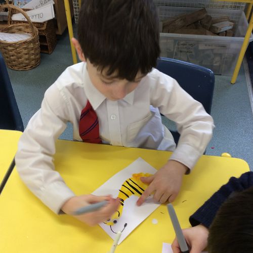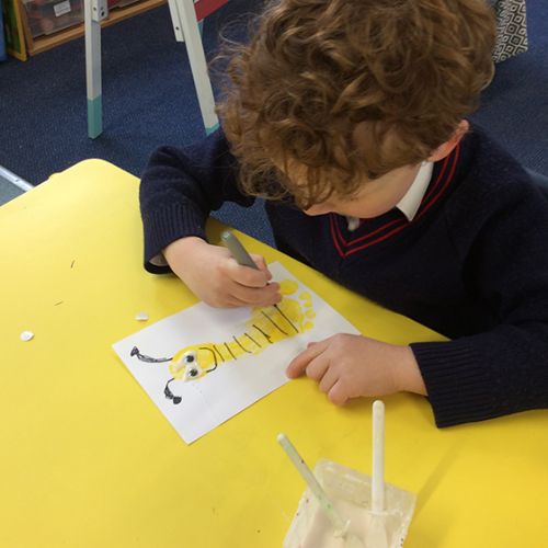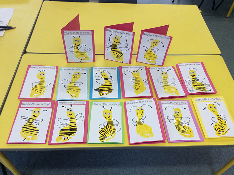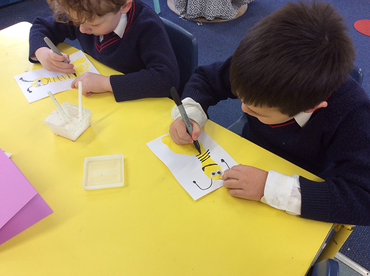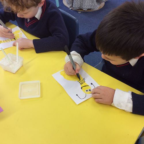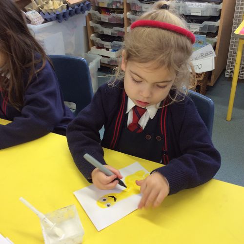 The children were in fits of giggles as we made our special Mother's Day cards. Our cards used the children's footprints as the basis of the card, so having the palms of their feet painted yellow made the more ticklish of children laugh a lot! Once dry, the children turned their footprint into a bee and then wrote their message to their mummy inside their card. They look bee-autiful! The children also created a special coaster to take home for Mother's Day, using ceramic pens. They could draw whatever they wanted to on their coaster and they enjoyed the experience of creating an image on porcelain. It has been a busy week in Form 1 but certainly lots of fun!