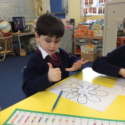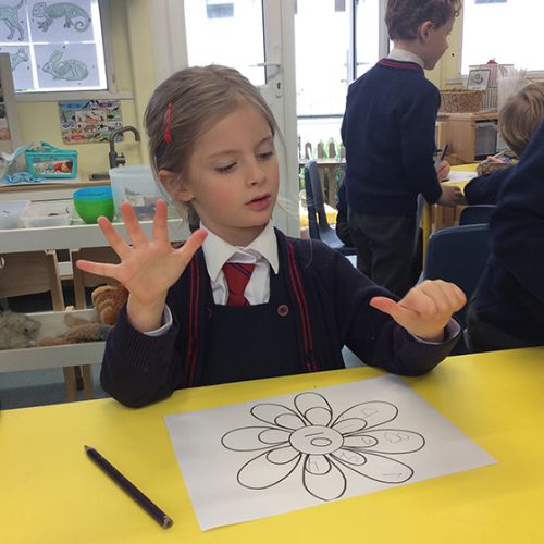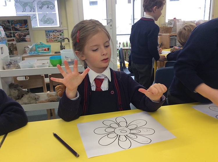 In maths this week, the children have continued to secure their understanding of number bonds to 10. We focused on using our fingers to find all the different ways to make 10 and recorded these on our number bond flower petals. The children are being encouraged to show different amounts on their fingers without needing to count, they are getting very speedy indeed!