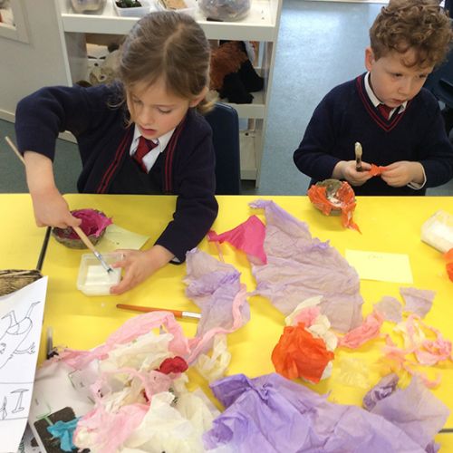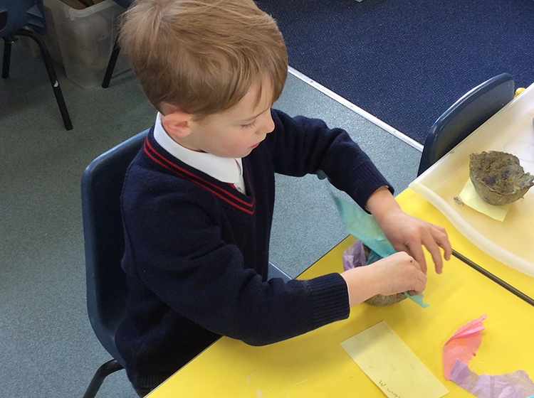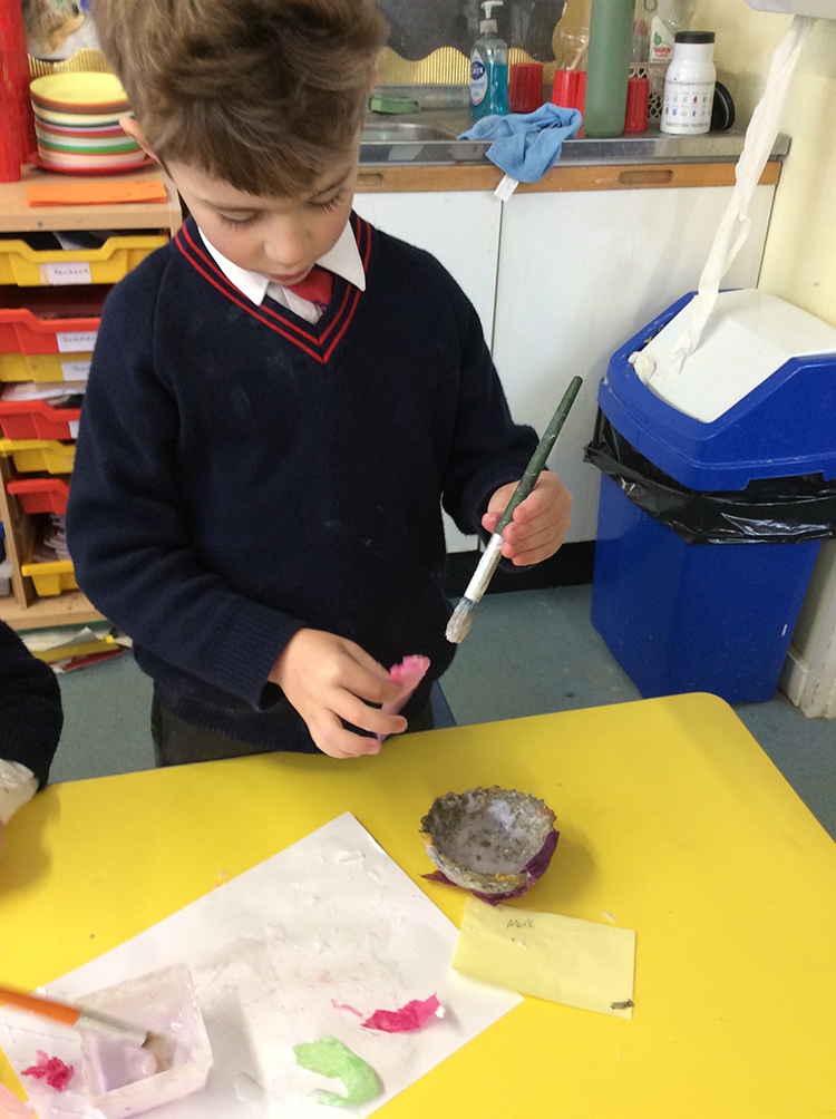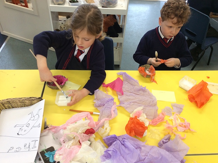 Form 1 have loved making gifts for Mother's Day this week. The children were challenged to turn egg boxes into paper bowls, which was a great link to science and changing states! We started by tearing egg boxes into little pieces and letting these soak for a few hours. Then we had fun using the blender to create a pulp. The pulp then needed to be pressed into a sieve to remove any excess water and we then added flour, salt and PVA glue to bind it together. We then lined a bowl with cling film and pressed the mixture into shape, using the bowl as a mould. Once dry, our paper bowls were ready to decorate and the children used tissue paper and PVA glue to make them bright and colourful. They look lovely!