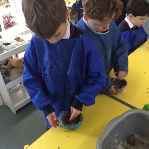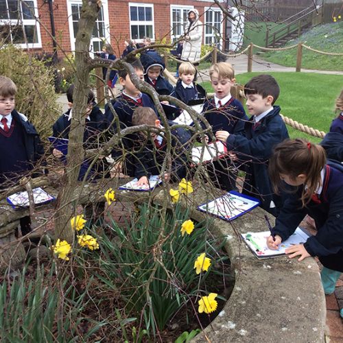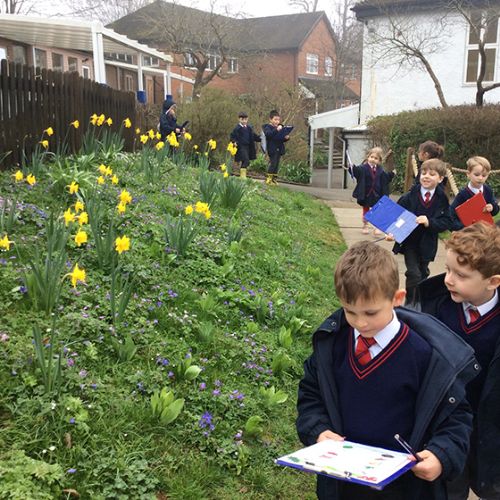We started the week by going for a lovely spring walk, looking for all the signs that the season had changed. The children loved getting their wellies on, taking their clipboards with checklists attached and noticing all the little signs of spring. We spotted daffodils, buds on trees, new leaves, birds, nests and insects. We then returned to Form 1 and wrote some simple sentences about what we had noticed. We also visited the sheep field and saw some very round ewes but no lambs. We are now eagerly awaiting the lambs being born, which we discovered are due on the 2nd April!