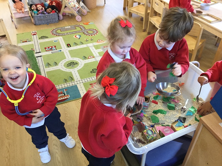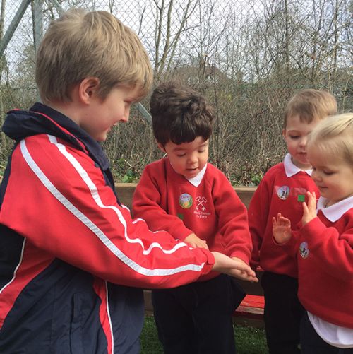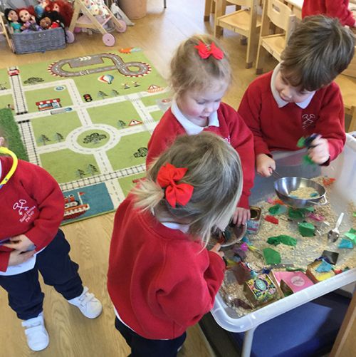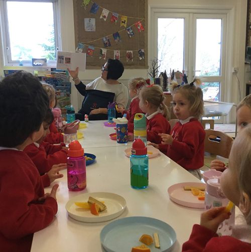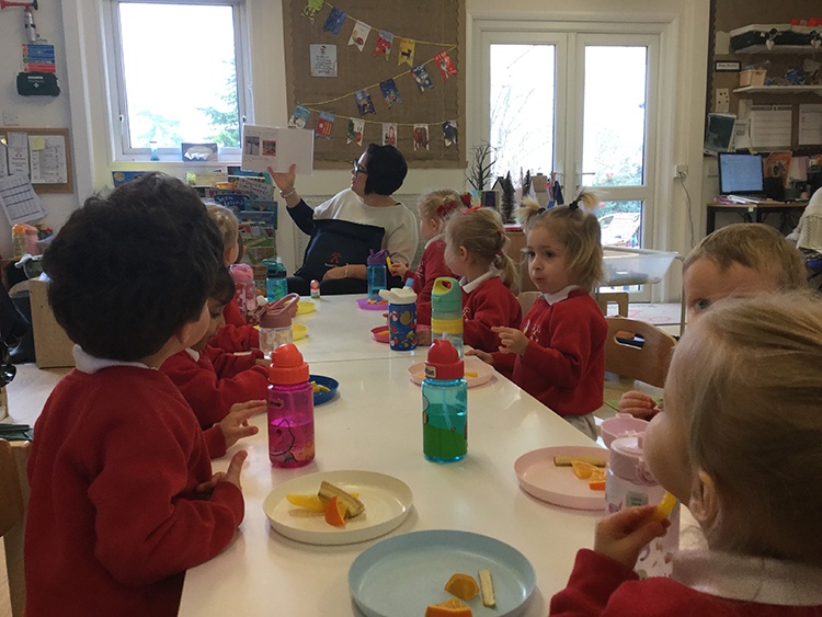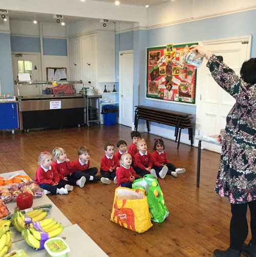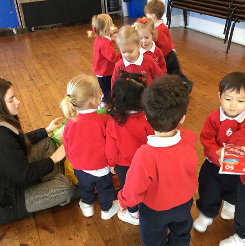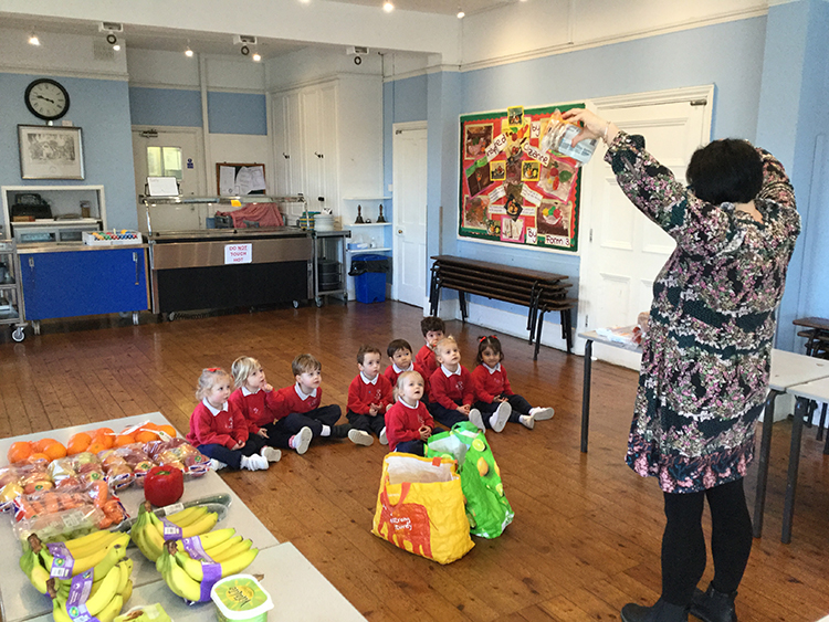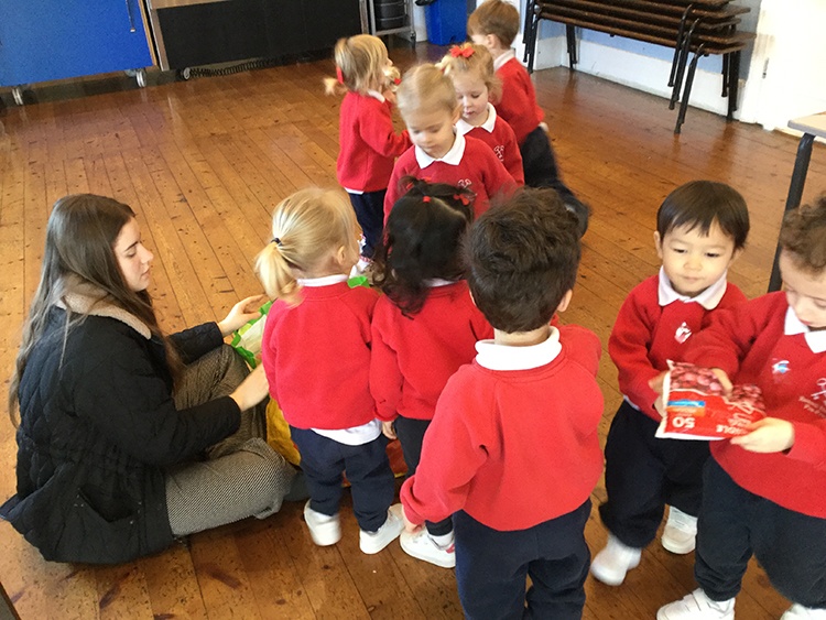 The week started with a visit to the Old Hall to collect our weekly shopping. Everyone worked as a team to pack the groceries into the bag and once back in class, the children helped Miss Ruby by placing the shopping on the kitchen worktop.