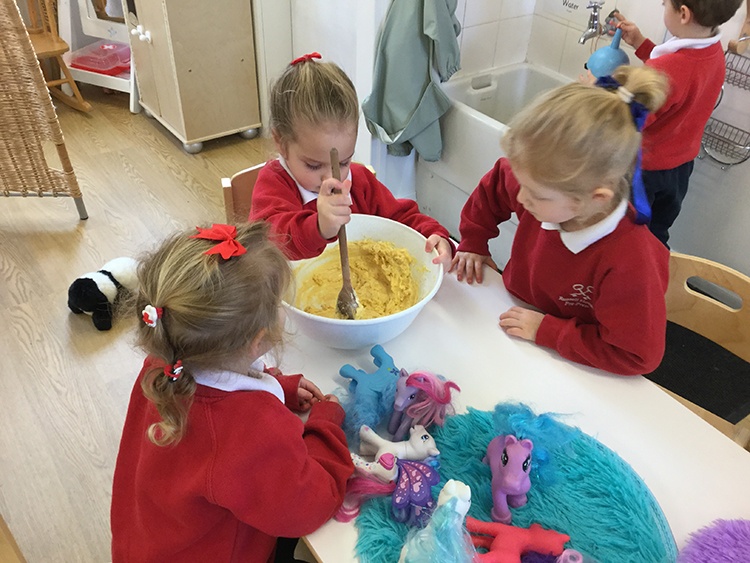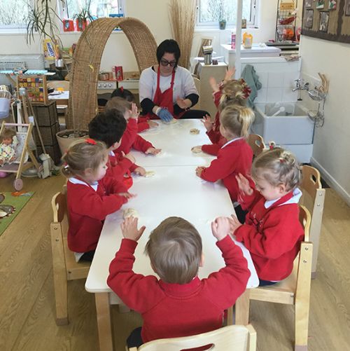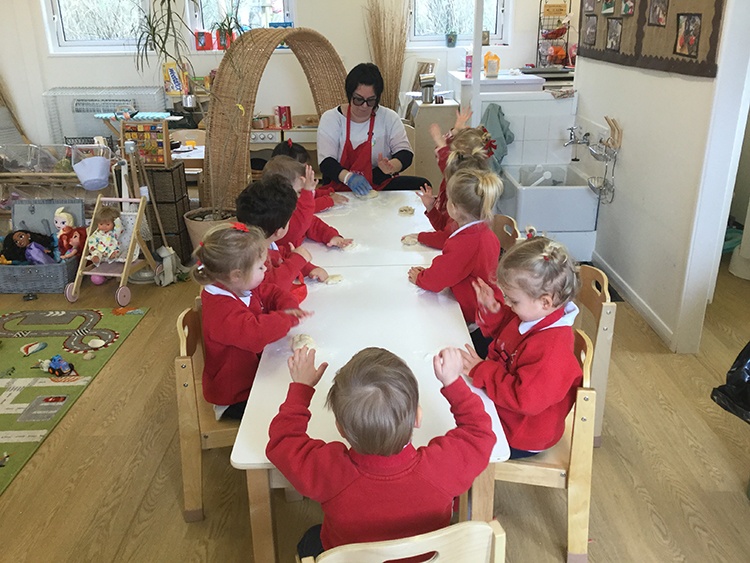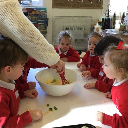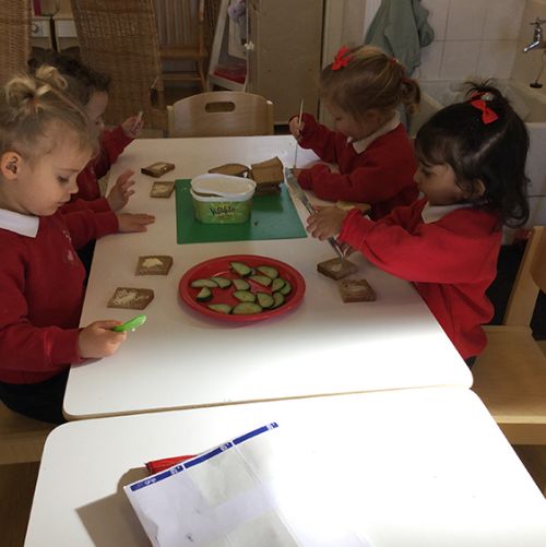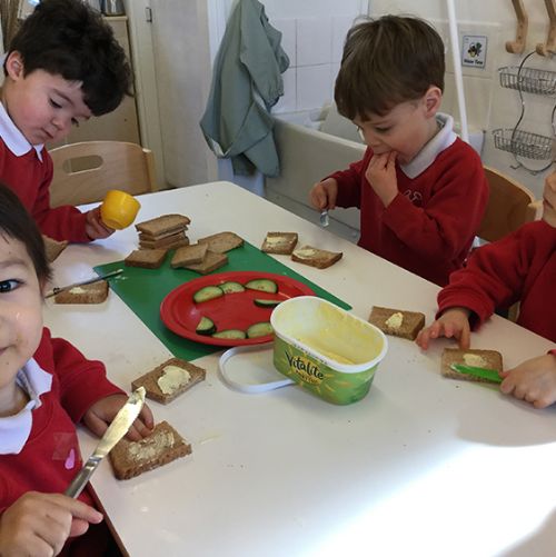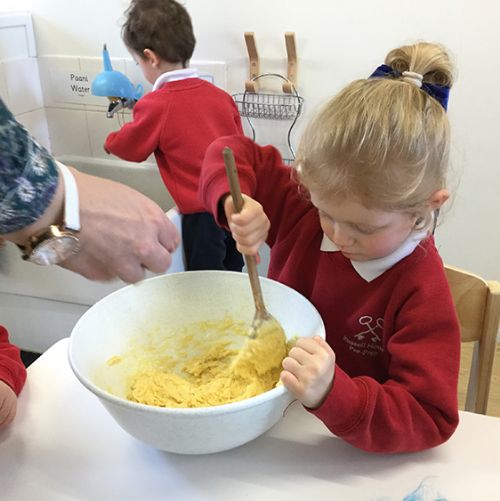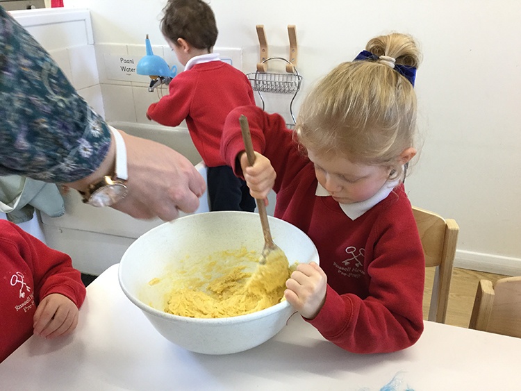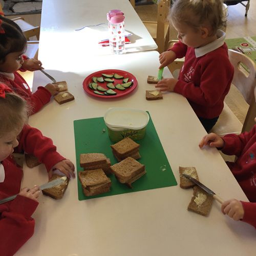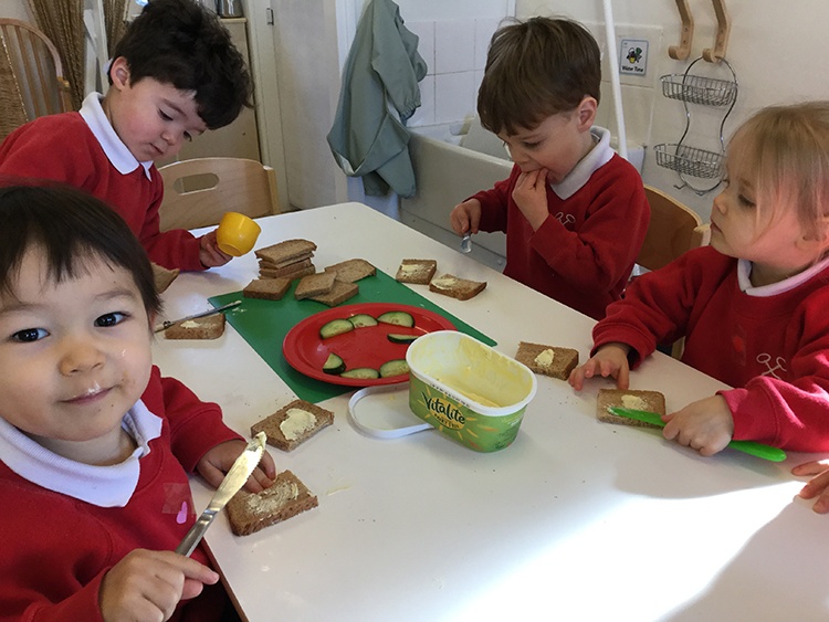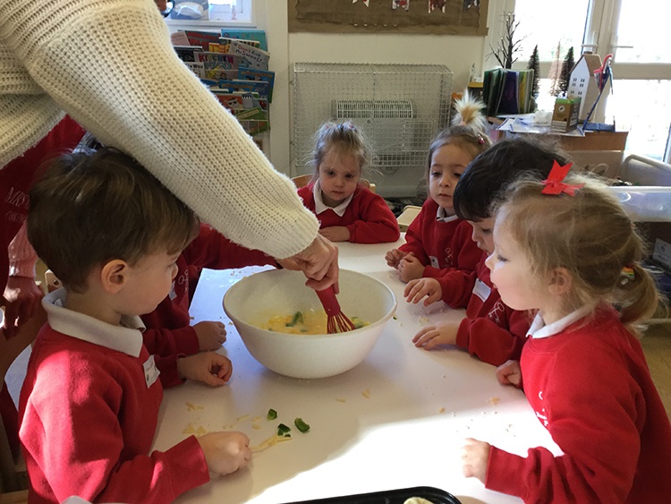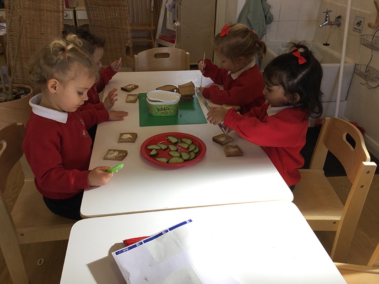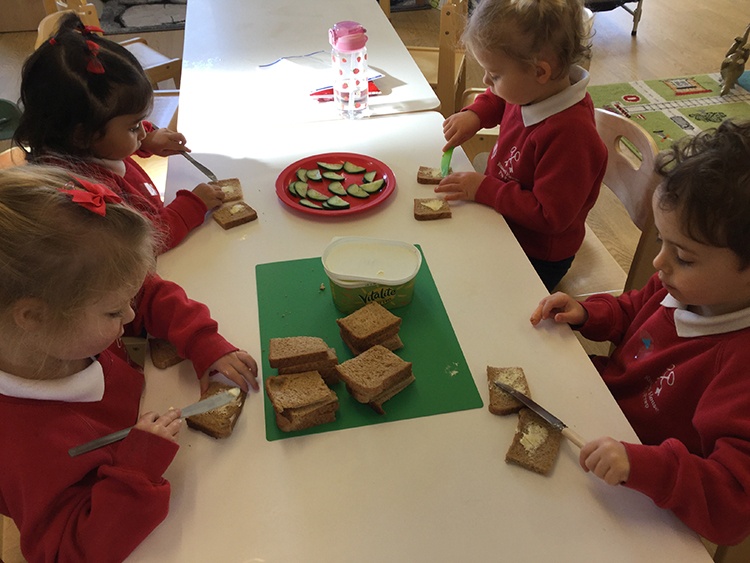 This week’s cooking activities consisted of sandwiches, low sugar raspberry and lime cake, iced buns, cheese and vegetable quiche and low sugar banana cake. The Robins thoroughly enjoyed spreading, mixing, squeezing and mashing. The children learn many great skills whilst cooking and it encourages them to try new foods.