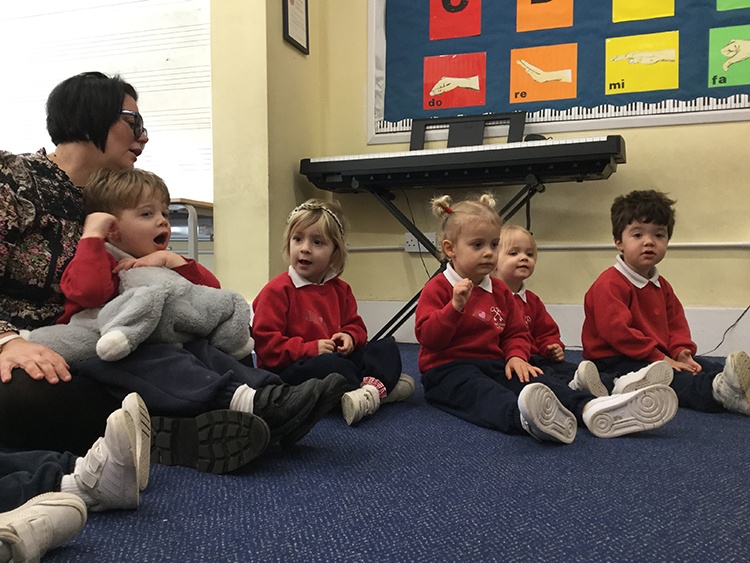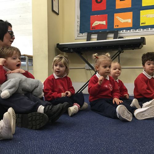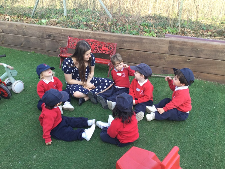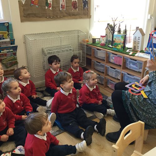 Carpet time supports the children's communication and language by discussing our daily routine and picture cards. It is also great for supporting the children's confidence.