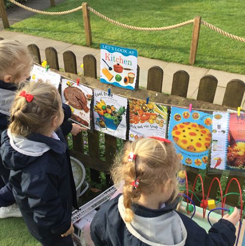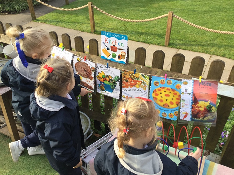 To further extend their love of cooking, I tweaked the Sand Kitchen area outside by displaying many recipe cards for the children to explore. This promoted lots of lovely communication and language and it was wonderful listening to them share and discuss which recipe they were going to cook.