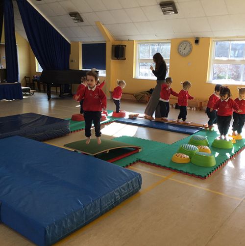 Lots of fun was had, exploring the sensory PE circuits in the Russell Hall. Before each session, we warm up by running around and playing the start and stop game. The Robins balanced, climbed and jumped whilst following the circuit in a clockwise motion.
