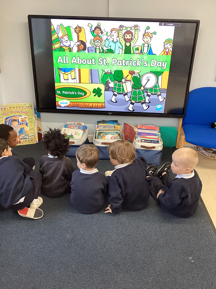Tuesday was St Patrick's Day. The children learnt some facts about why Saint Patrick is celebrated, and even tried to learn an Irish Jig! The next day, we learnt about Eid and are looking forward to making some moon and star-shaped biscuits to celebrate. Nursery children are doing very well remembering and recalling facts about all the different festivals.