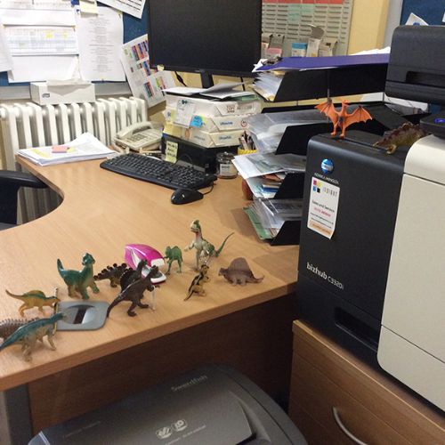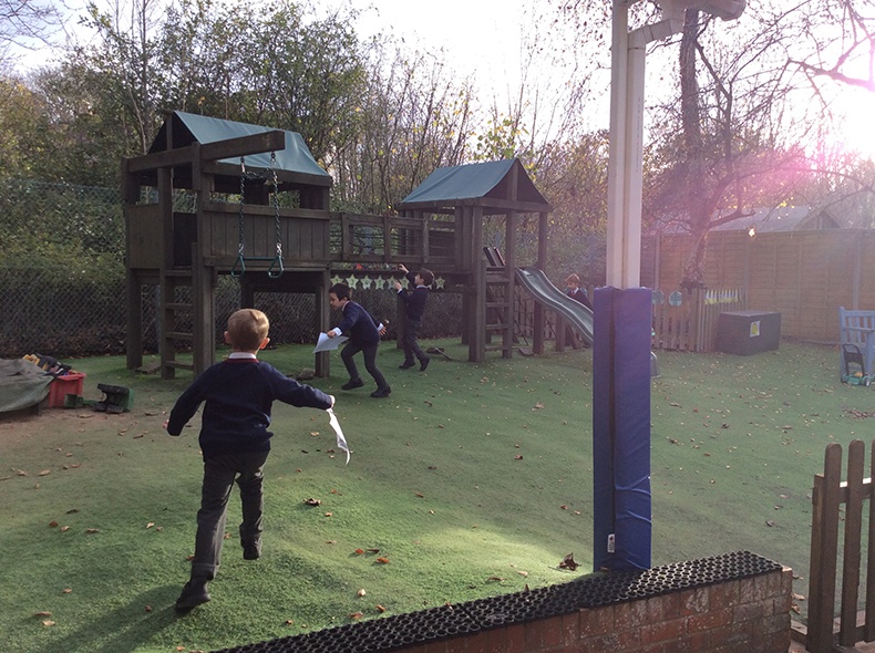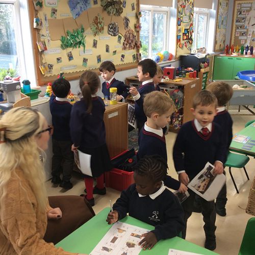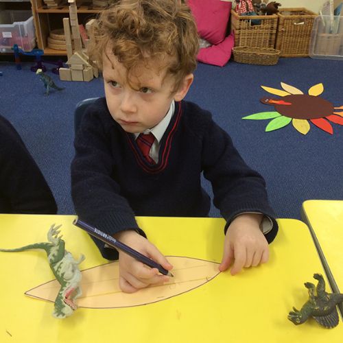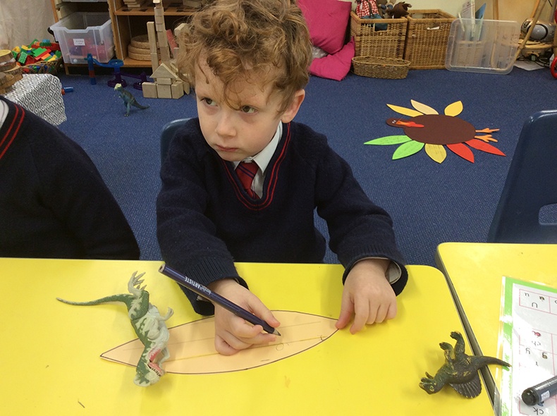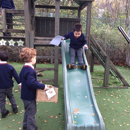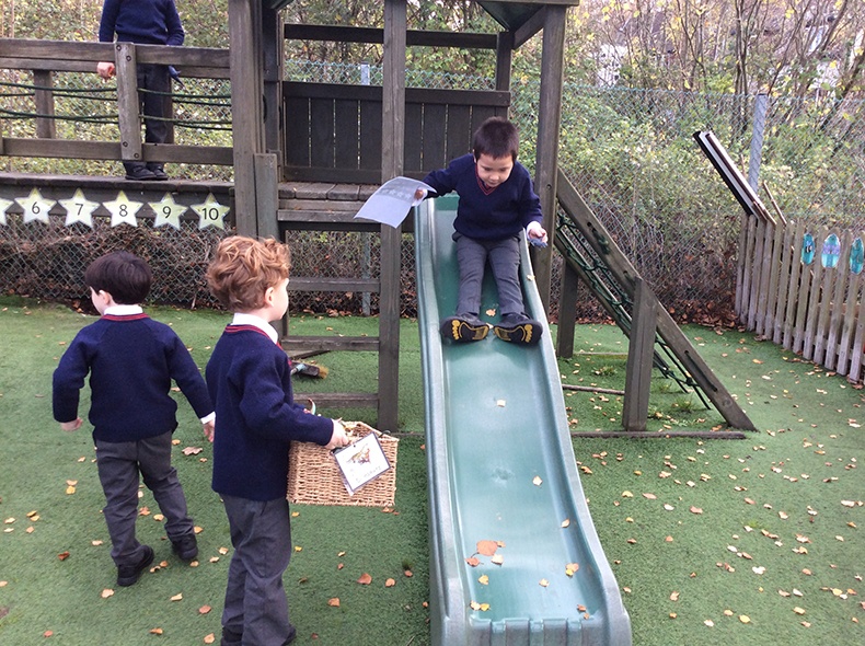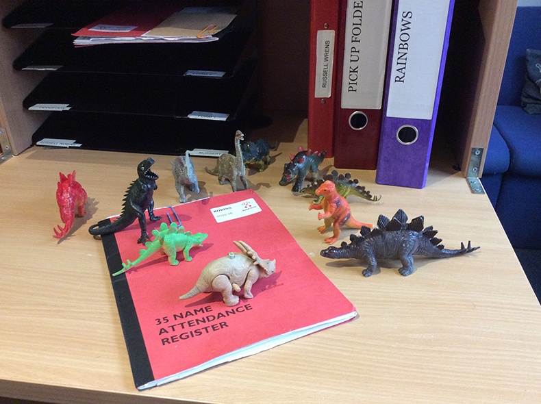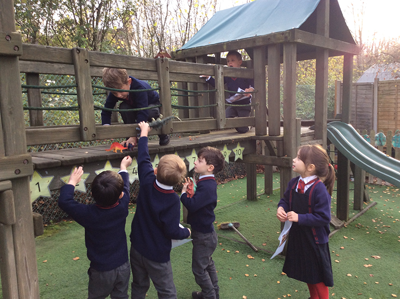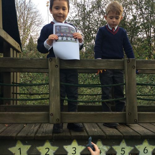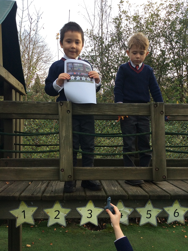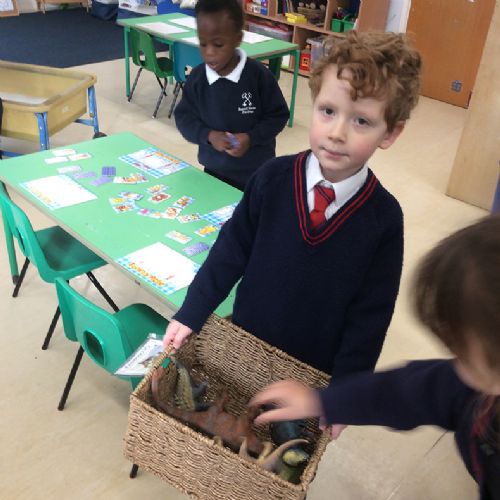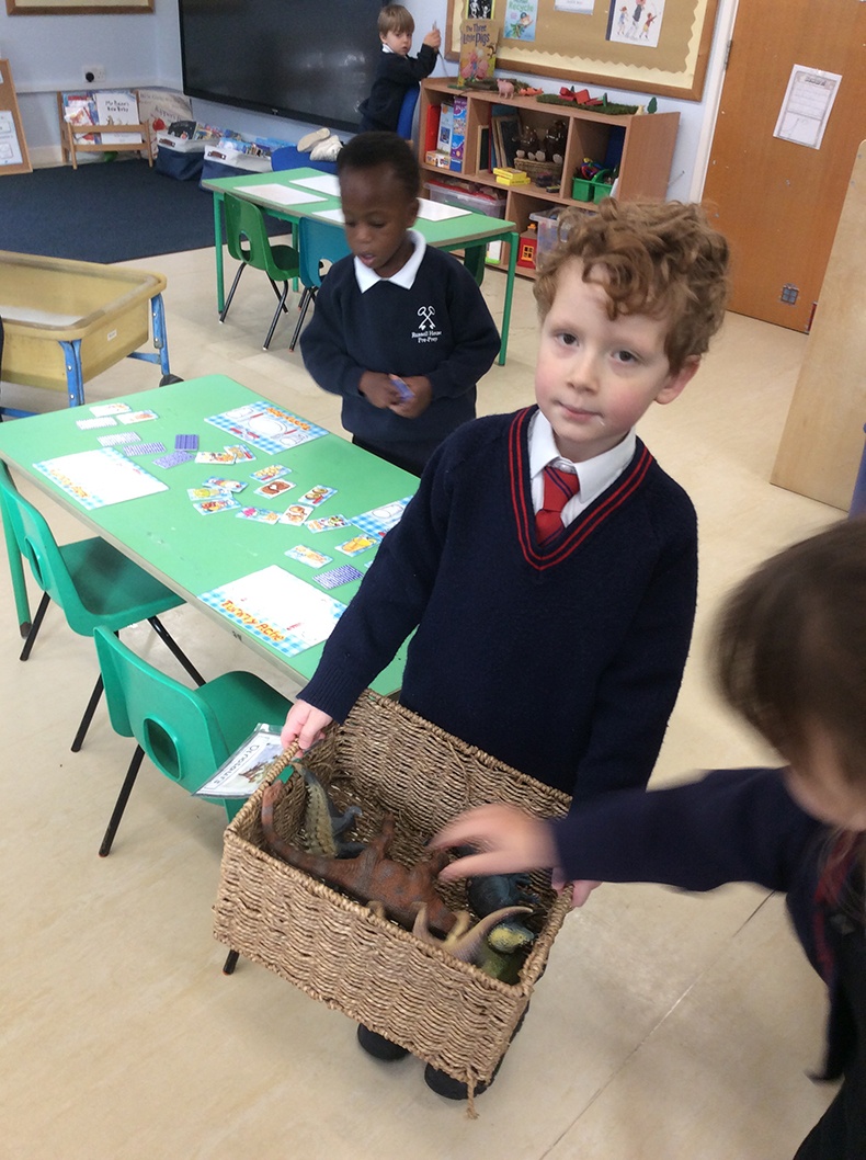They quickly worked out where the photographs had been taken and were then off on a mission to recover them. We visited the Nursery classroom and climbing frame, Mrs Tickner's office and Mrs Parker's desk. We collected the dinosaurs in our basket and brought them back to Form 1. The children were relieved that they had not done anything silly whilst loose around Russell House and are very glad to have them back!
